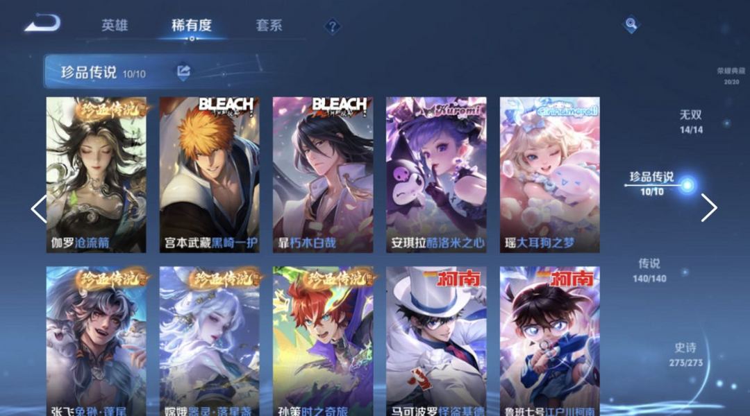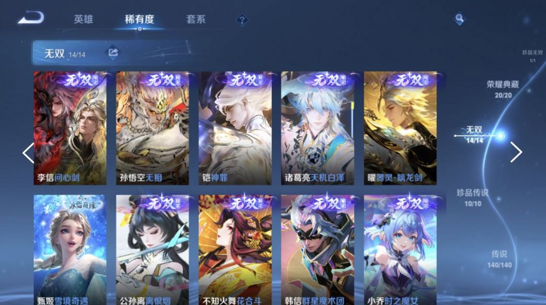 无双v10⭐满典藏满无双满传说❤️无相 怪盗基德 离恨烟馥梦繁花❤️5小兵皮肤❤️投诉永久拉黑❗️