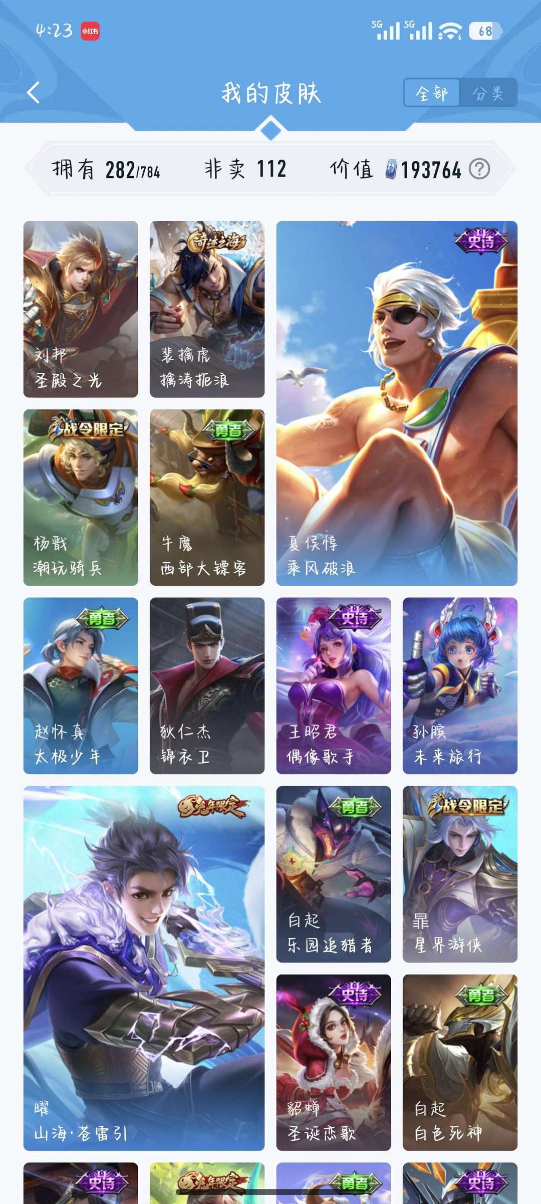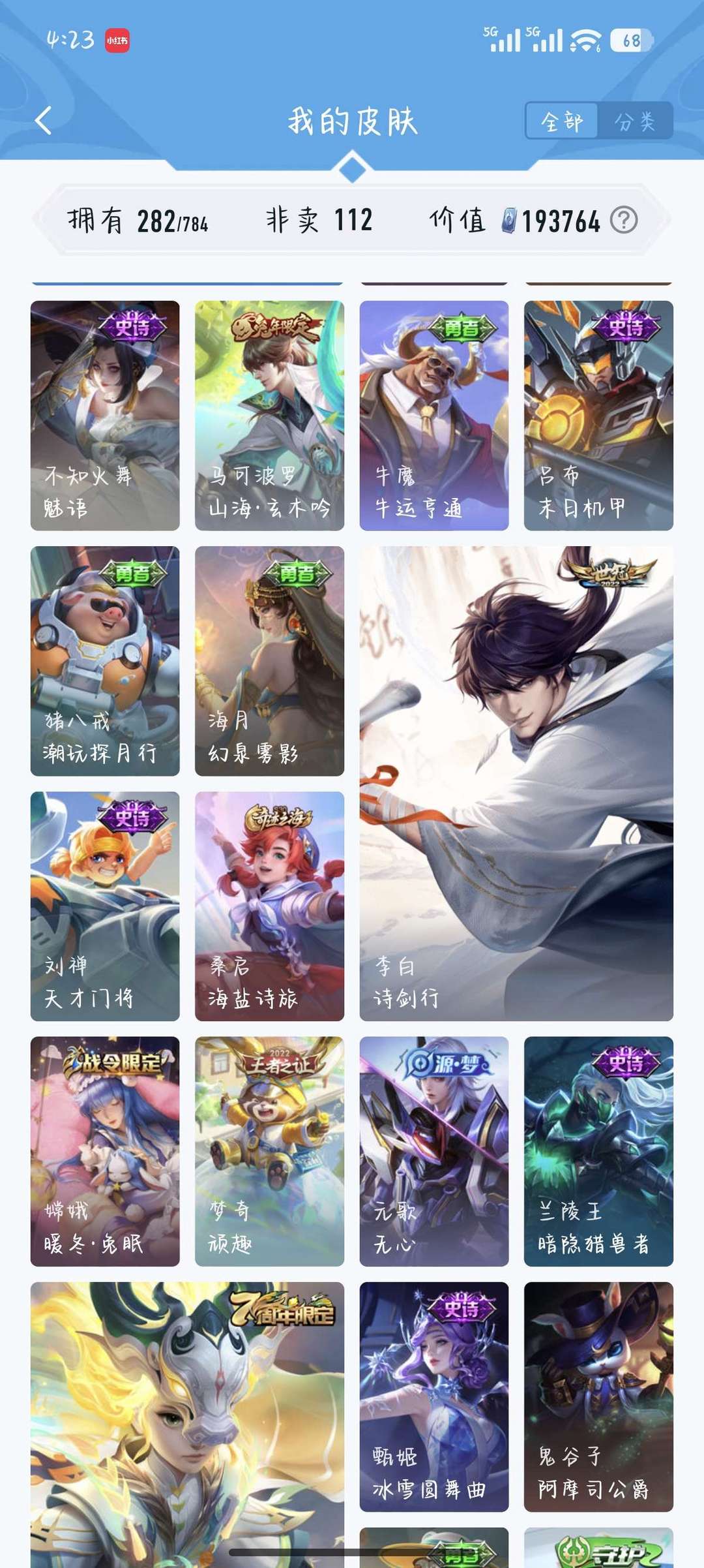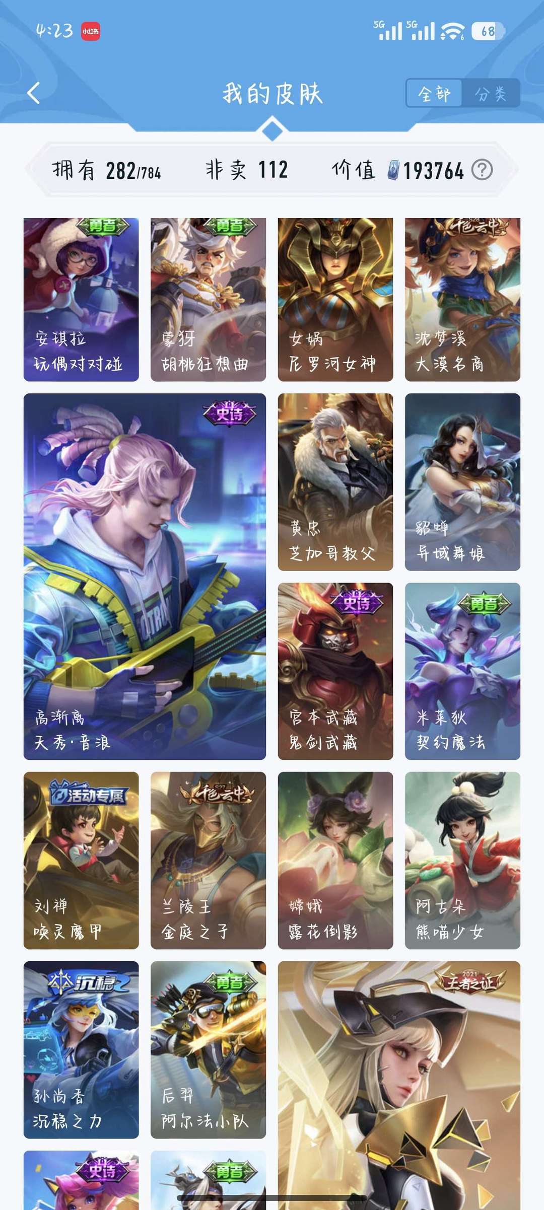 可排位,主刺客,法师。(李白,韩信,宫本,干将,)皮肤较多。有需要的可以拍 ,谢谢