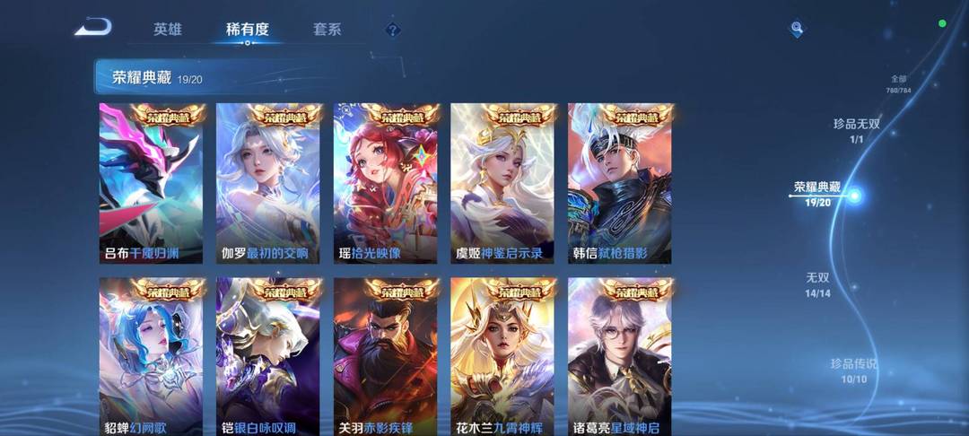 准满皮780皮无双v10⚡3小国繁花馥梦⚡19典藏满无双⚡满珍品传说满传说
