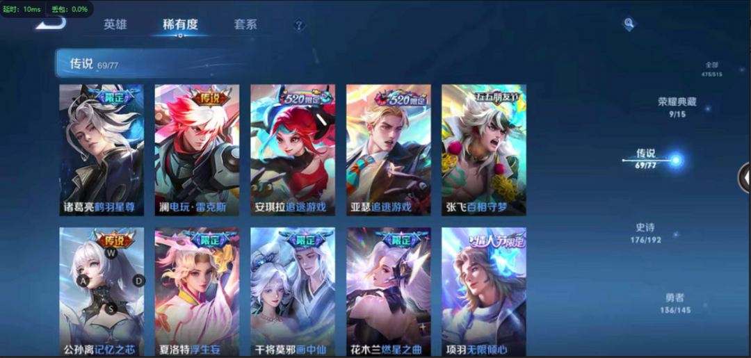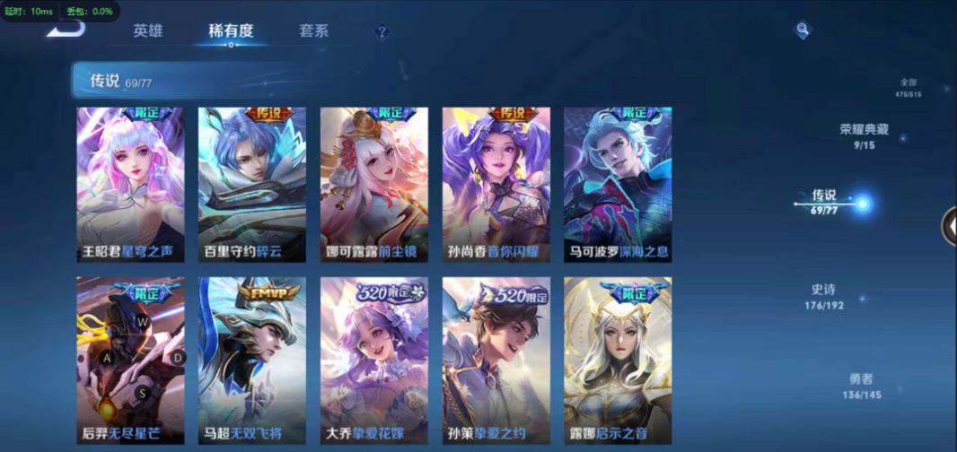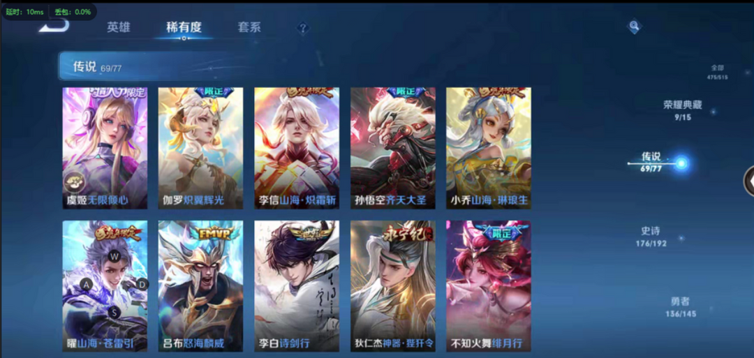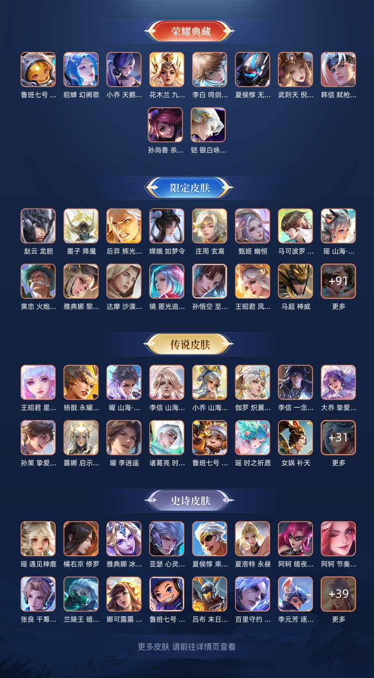 本游戏账号: V10用户,基础段位:永恒钻石II,英雄多,皮肤多。典藏皮肤9个,感受典藏皮肤带来的优质体验快感,FMVP皮肤7个,尽情享受FMVP皮肤带来的主角光环, 私人所属英雄皮肤有:铠 银白咏叹调||孙尚香 杀手不太冷||鲁班七号 星空梦想||夏侯惇 无限飓风号||李白 鸣剑·曳影||武则天 倪克斯神谕||貂蝉 幻阙歌||韩信 弑枪猎影||小乔 天鹅之梦,等等