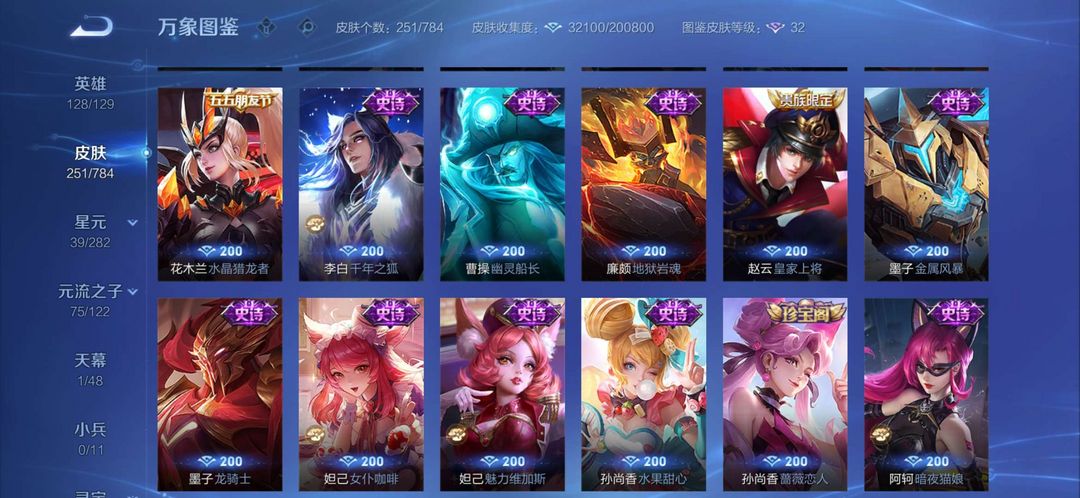 典藏1,马年限定貂蝉,历史最高30星左右,巅峰历史最高1400左右