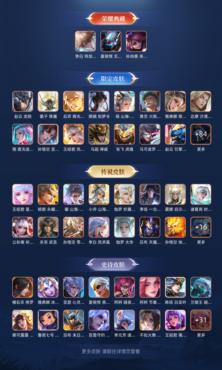 非常多的皮肤,亲,自己看看。限定的该有都有。