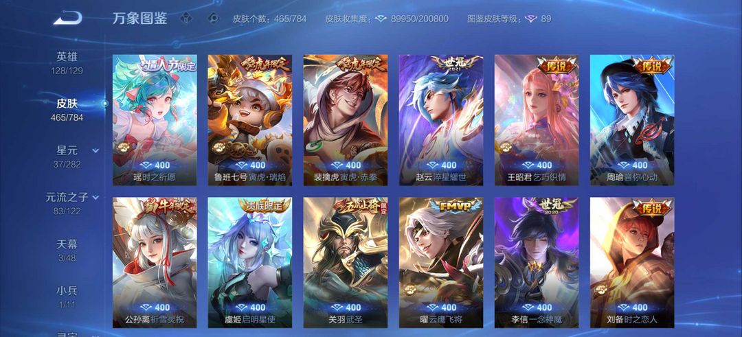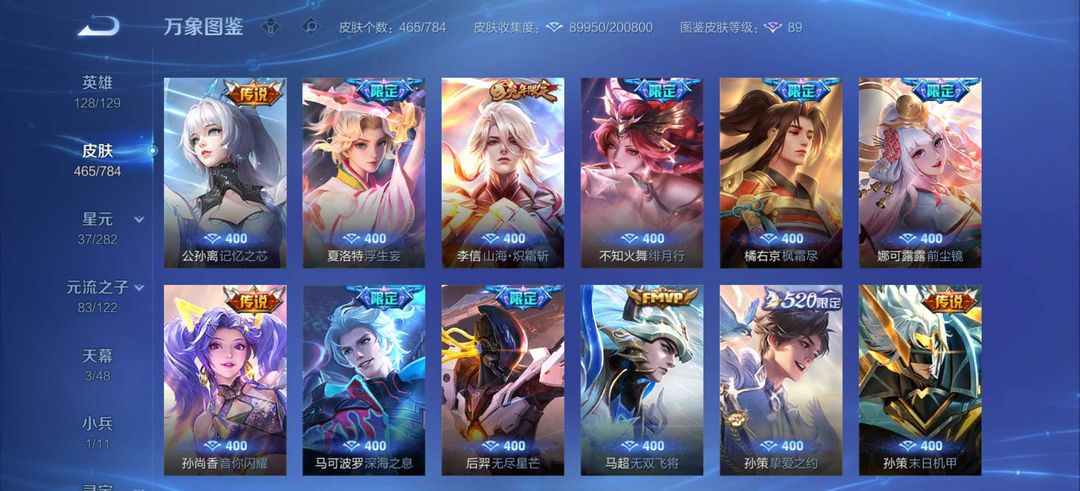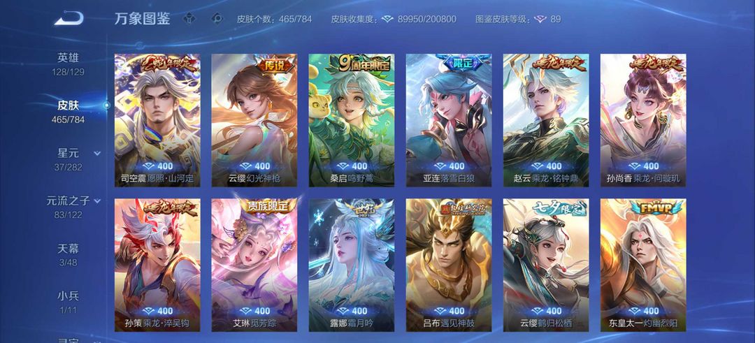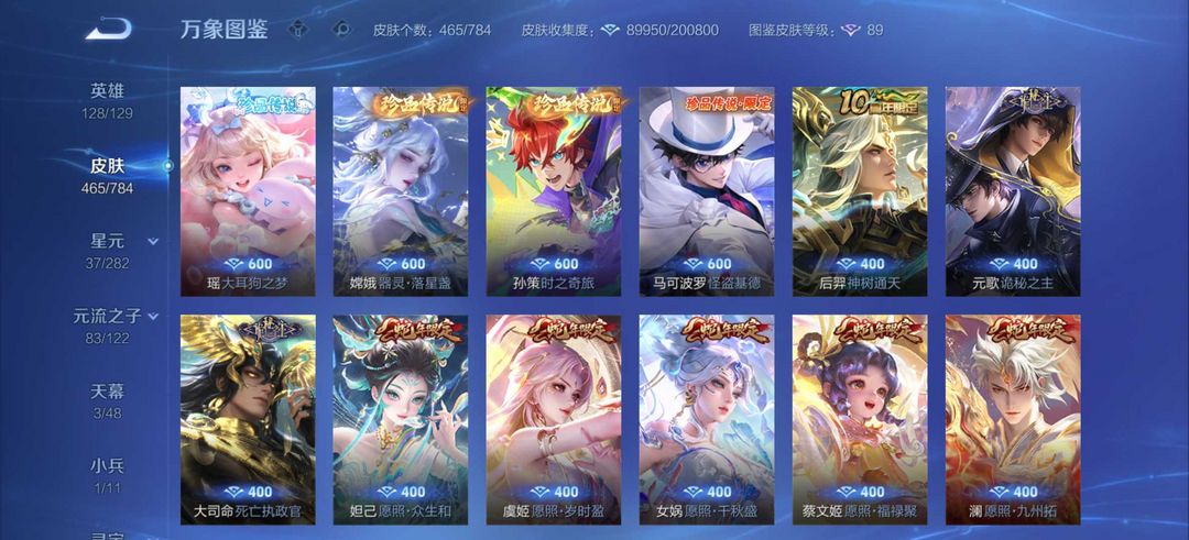 v10 467皮 6典藏 52传说 虎龙蛇年全皮 貂蝉珍品无双慕夏 酷洛米 死神 诡秘之主 怪盗基德
