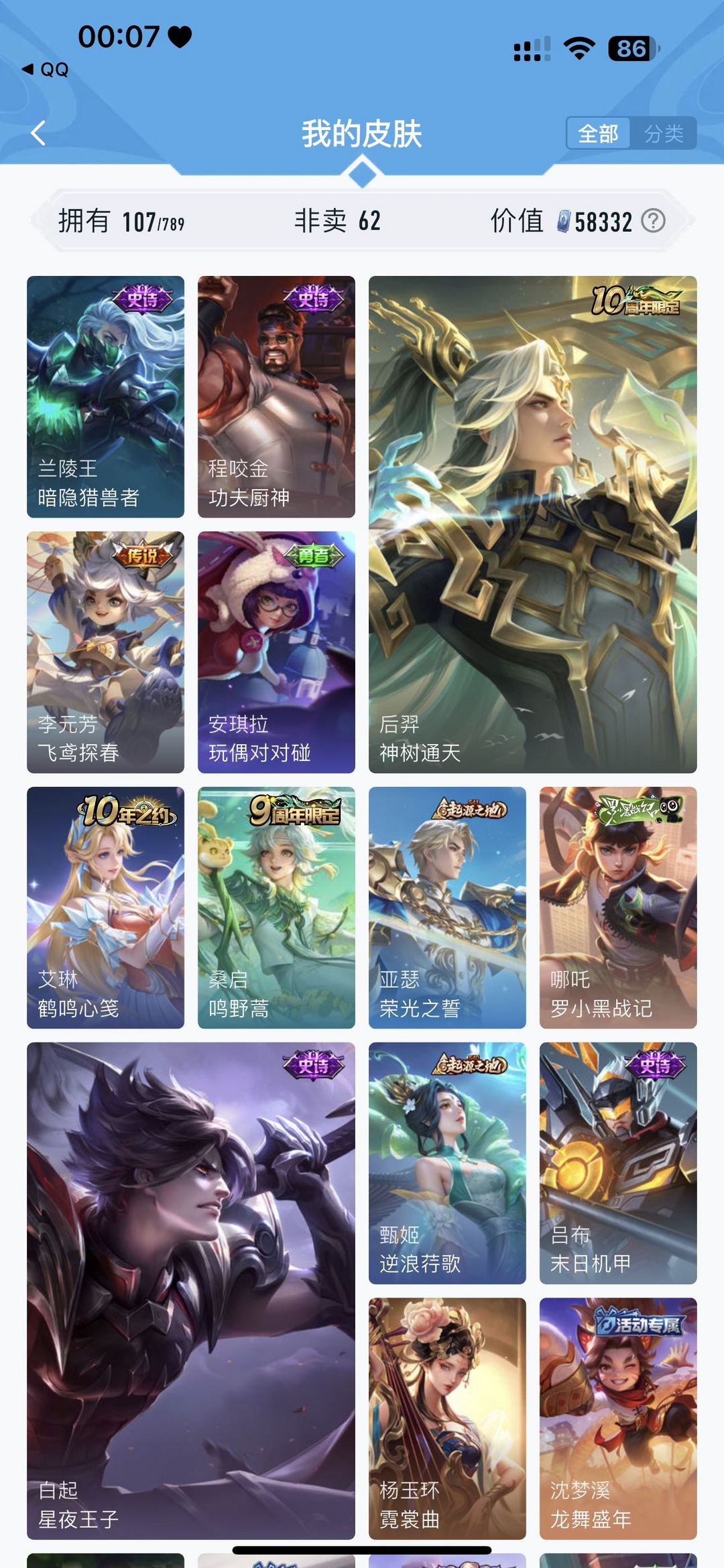 常用英雄铭文都有 皮肤也多 低价出租 简单朋友开黑绝对够用