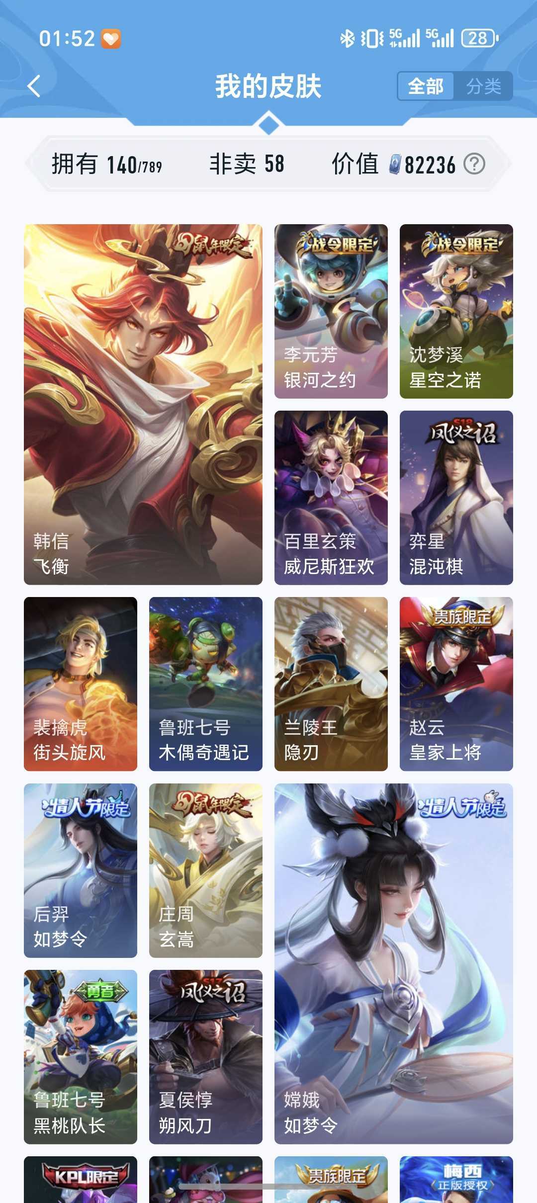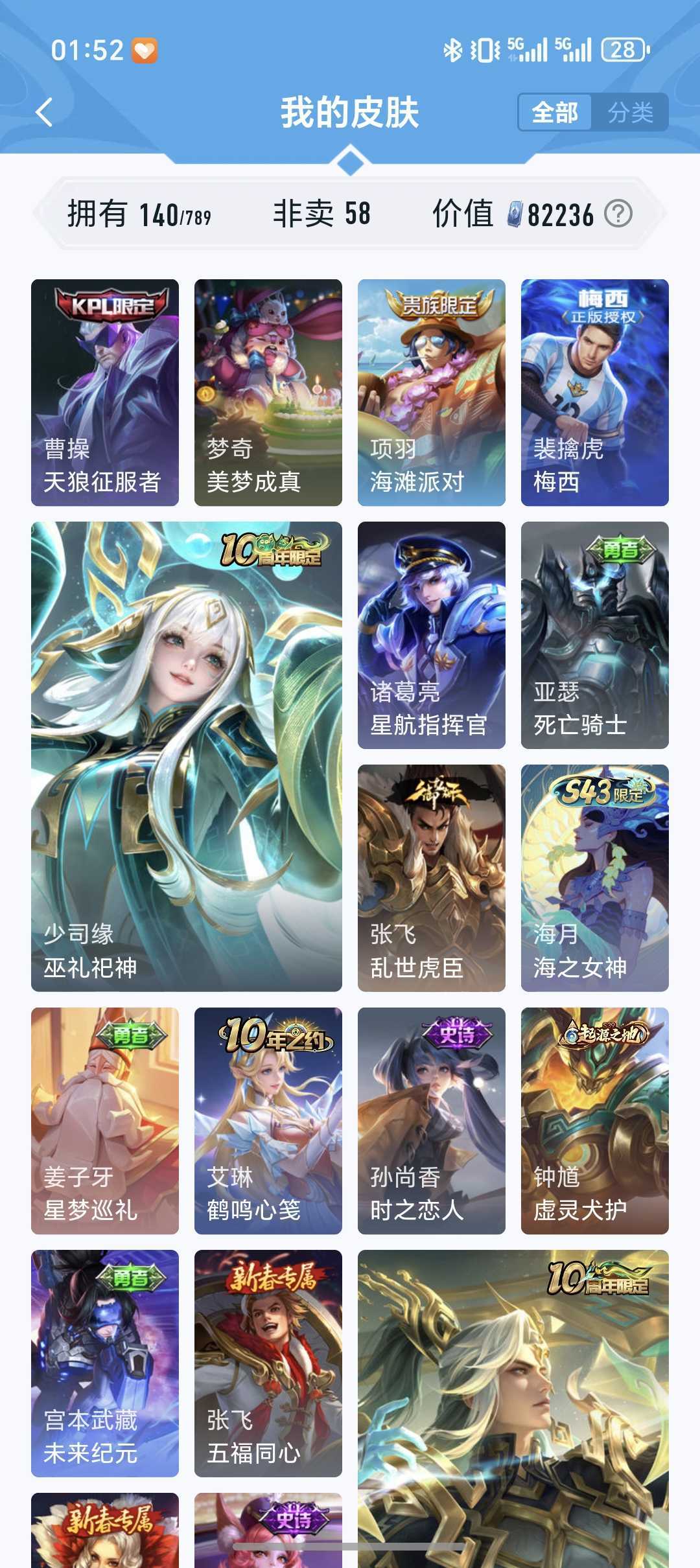猴子的至尊宝 裴擒虎的梅西 吕布的KPL限定 赵云的龙胆 上官婉儿的天狼绘梦者………