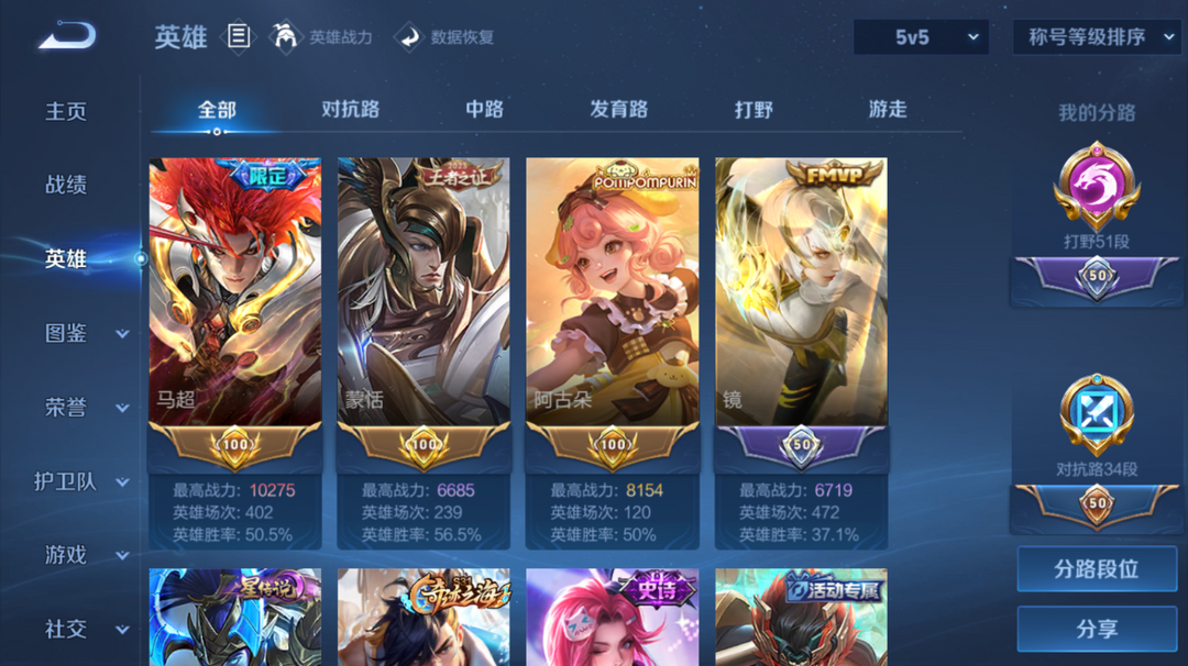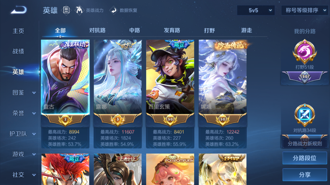 爽玩小号♥金标嫦娥1.2w♥万战金标露娜1.1w♥马超1w♥盘古♥百里玄策♥阿古朵♥蒙恬♥孙尚香典藏