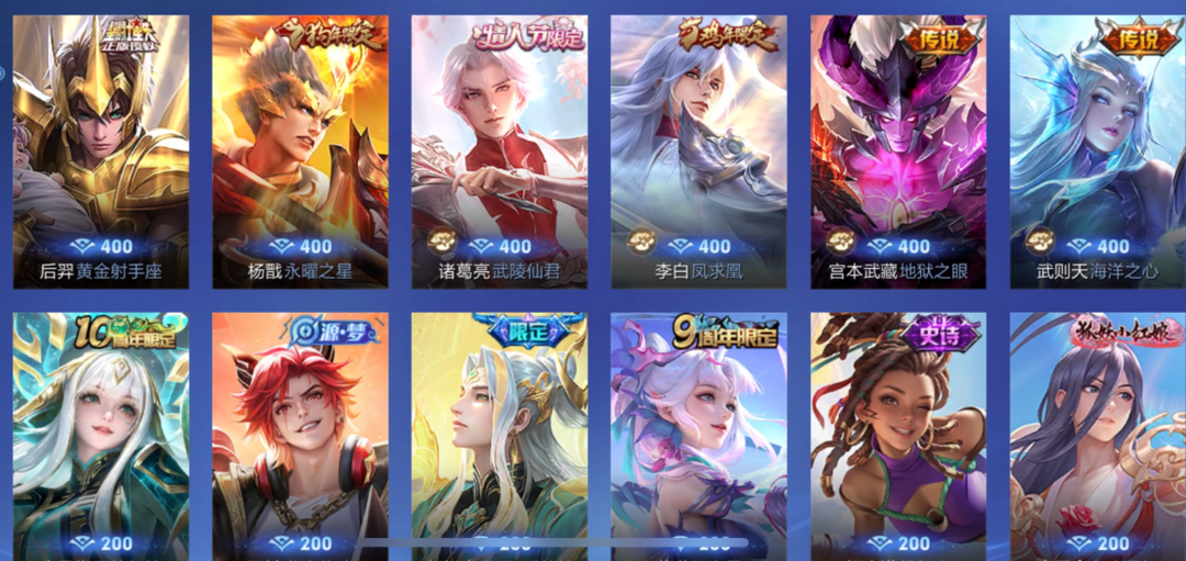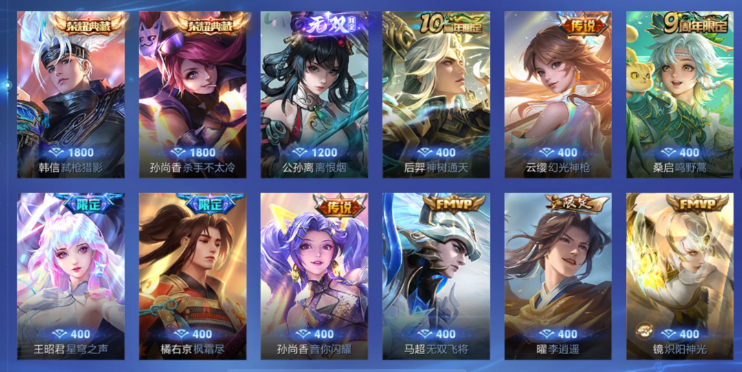 苹果贵族V9✨钻石353皮肤弑枪猎影杀手离恨烟无双李逍遥炽阳神光枫霜尽神魔白虎射手星穹之声限定