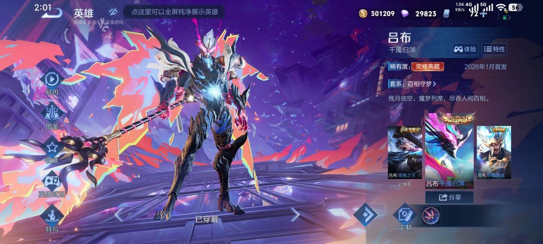 |吕布首款典藏【千魇归渊】专属号 ✅核心亮点:给我擦皮鞋➕双形态建模+ 附魔差异化技能+双随机大招