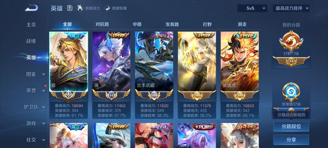 正式服在榜77段打野⭐1.8w大国标暃⭐1.7w小国标澜宫本武藏⭐v10贵族皮肤共享⭐可排位
