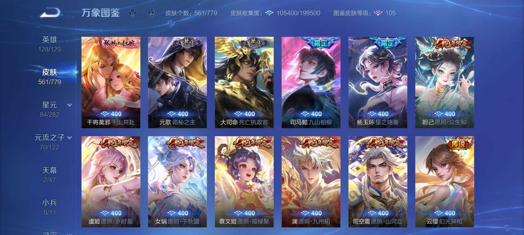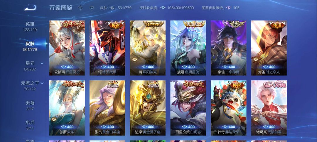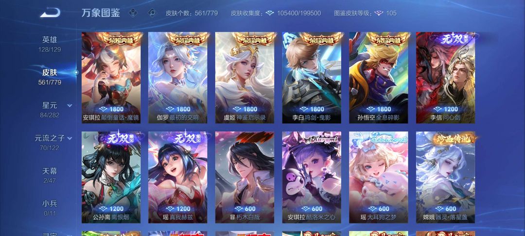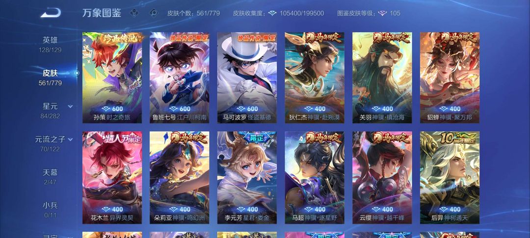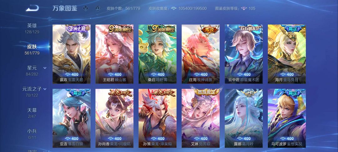 V10无双561个皮肤有安琪拉典藏!