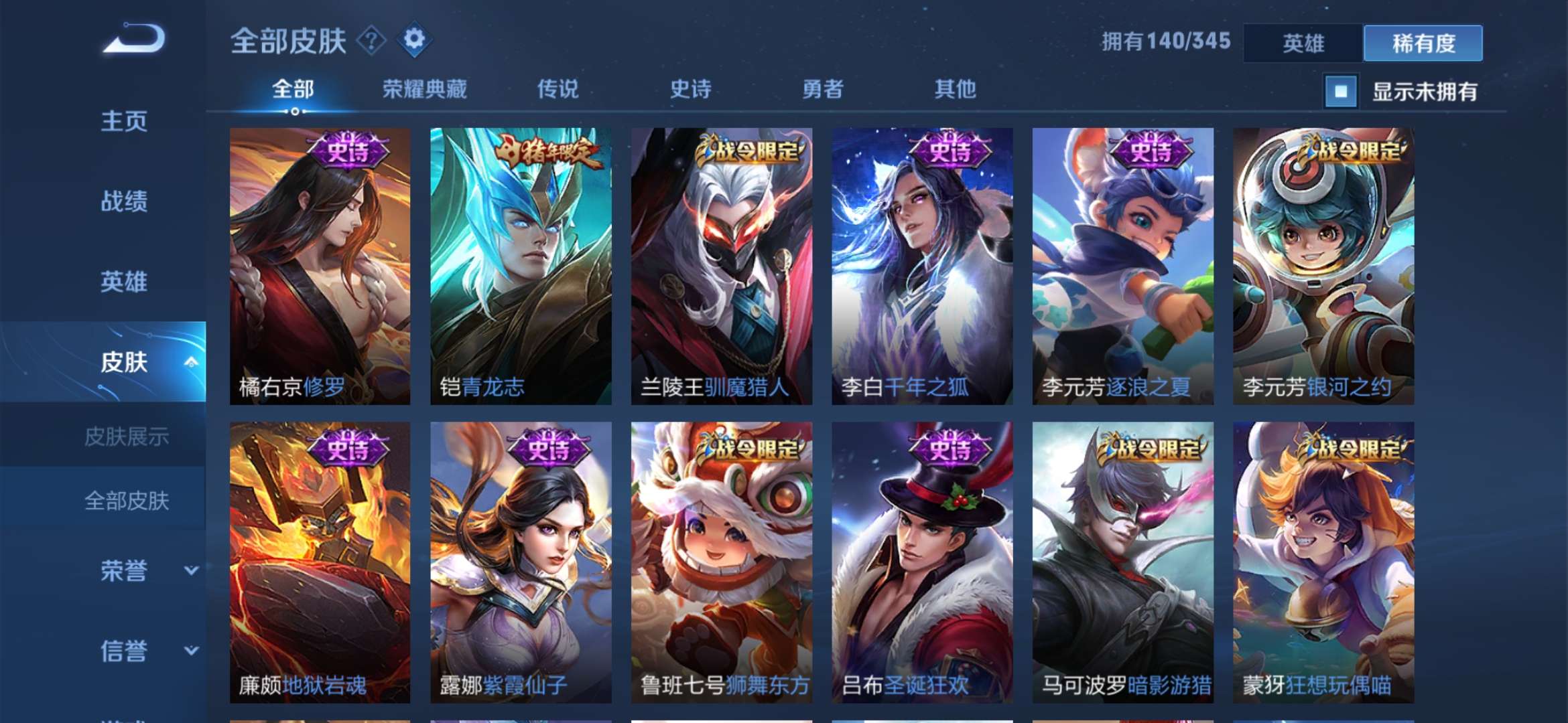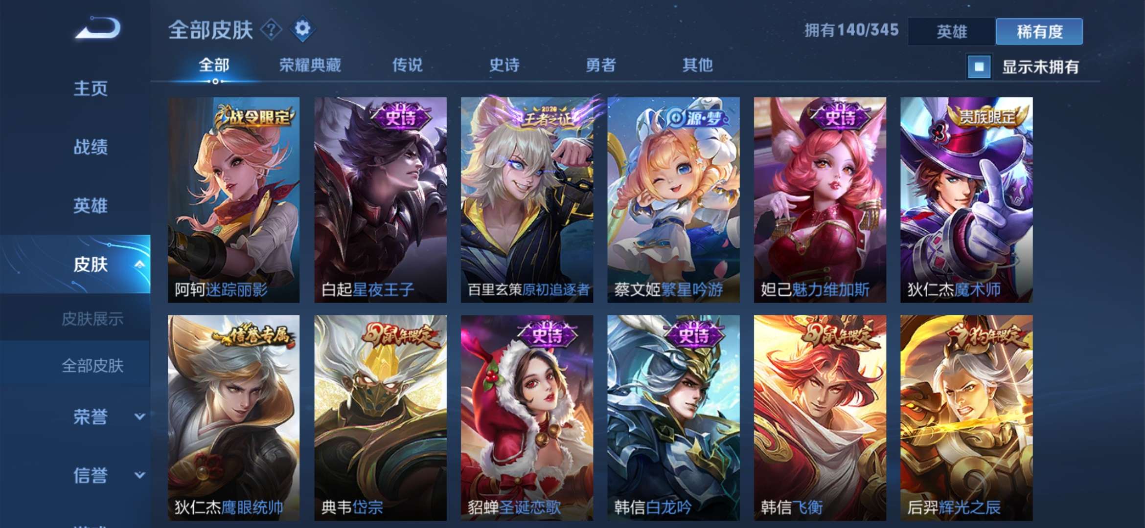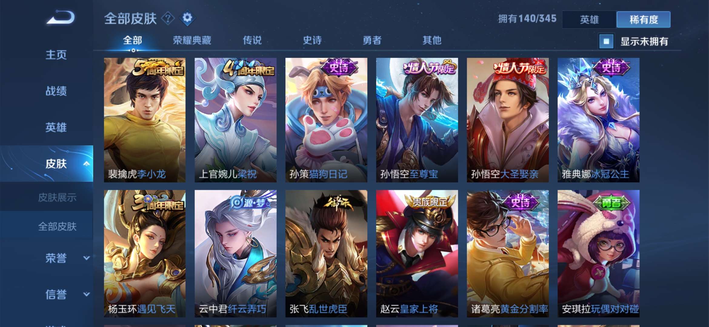 极品皮肤很多 猴子荣耀典藏全息碎影 白虎志 久胜战神 修罗 紫霞仙子 云鹰飞将 一念神魔 仲夏夜之梦 启明星使 永曜之星 辉光之辰…… 不要乱用东西 否则拉黑处理 祝你游戏愉快 满意可以给个好评哟