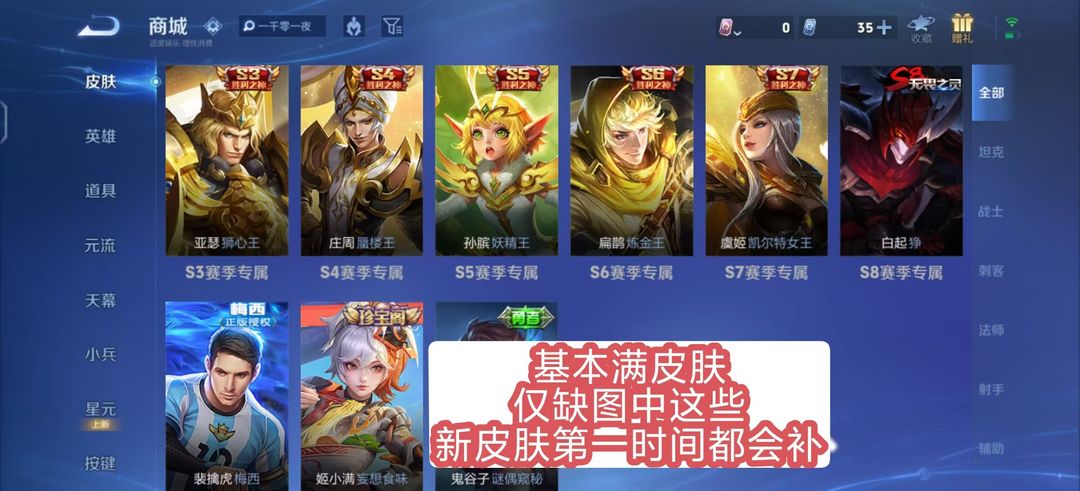 目前皮肤数量744,新出皮肤第一时间都会买,猴子无相已补。 提醒注意:租期到了请及时续费,不玩了及时下号(助手实时)。 禁止恶意【扣分】挂机 逃跑 送人头的 使用美化包等, 一经发现永久拉黑。恶意撤单也永久拉黑,谢谢理解,感谢您对本号的支持,祝您游戏愉快。