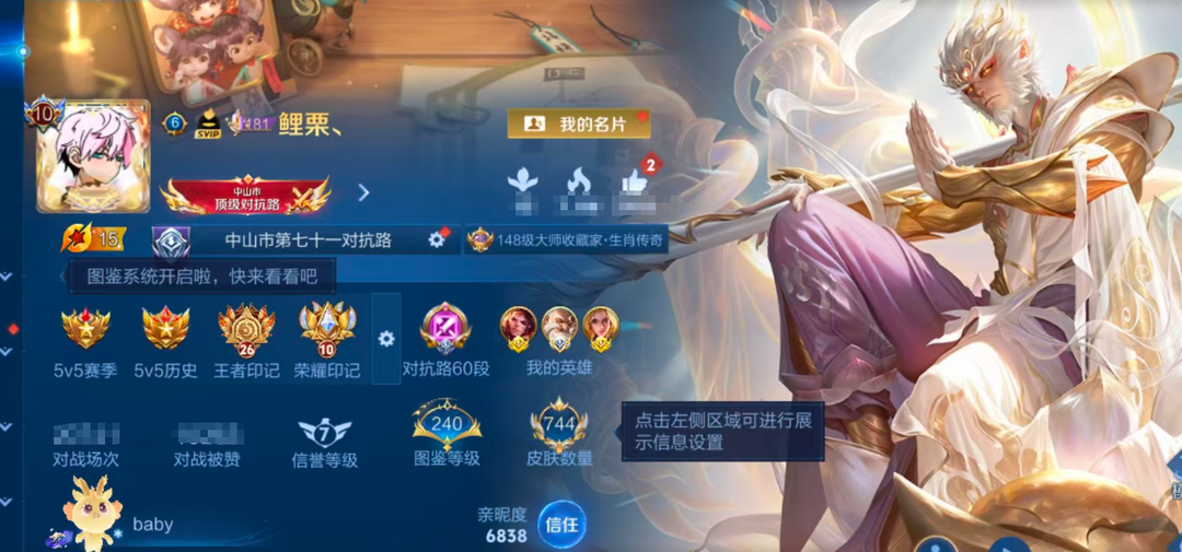 【包天特惠】744皮/猴子无双皮肤/对抗路59段/满水晶/满珍品无双皮肤/多限定天幕/准满皮肤