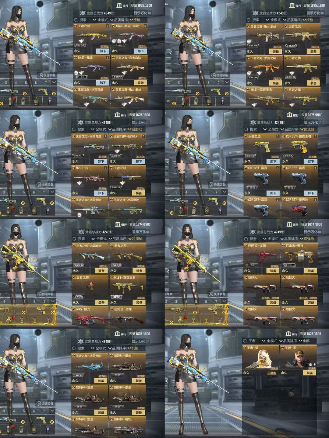本游戏账号:英雄武器266个, 王者武器8个。军衔: 荣耀元首,拥有:关小雨,萝拉,零,等7个角色。装备齐全让你拥有完美游戏初体验,特殊装备有:尼泊尔-机械纪元、AK47-无影-葵、G36-竞技战魂、TAC-慈、M12S-雷霆、巴雷特-毁灭、王者之击、MK47-机械纪元、98K-黑骑士、SKS-美杜莎、王者之电、巴雷特-极光、麒麟刺、尼泊尔-竞界荣光、M4A1-海骑士、AA12-雷神、M4A1-雷霆、王者之势闪光弹、M200-幻神、MK47-仁德、AUG-机械纪元、M4A1-竞界荣光、AK47-麒麟、M12S-雷霆王者、AK47-孟德、KAC-变色龙、MG36-黑骑士、QCW05-变形金刚·大黄蜂、M14EBR-天神、源·左轮-黑武士、M4A1-蓝龙魂、81式-阿波罗、98K-星神、M4A1-九尾狐、MK23-幻神、墨刃-幻神、MK23-机械纪元、AK47-波塞冬、AN94-超新星、巴雷特-雷神、CZS2-心动次元、王者之戮、地狱烈炎、巴雷特-枪娘、COP 357-雷霆、死神闪光