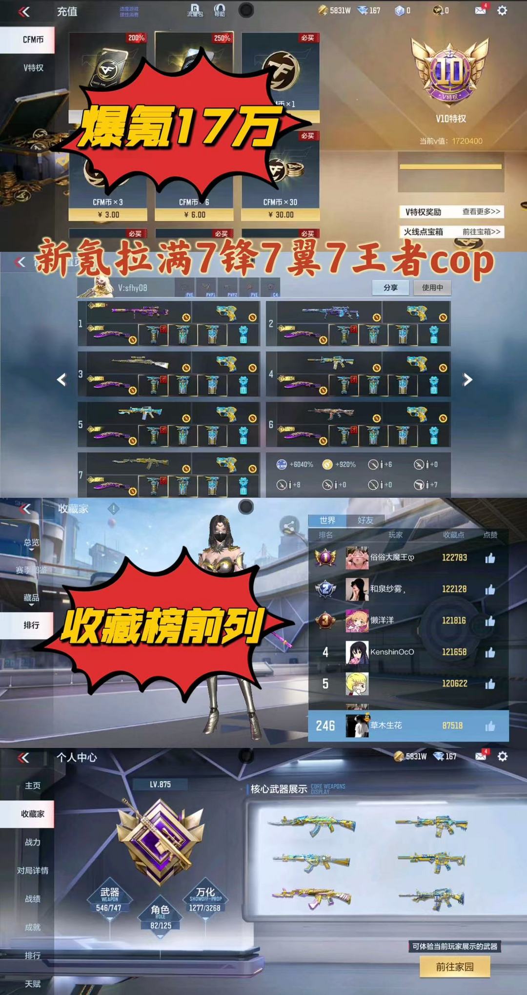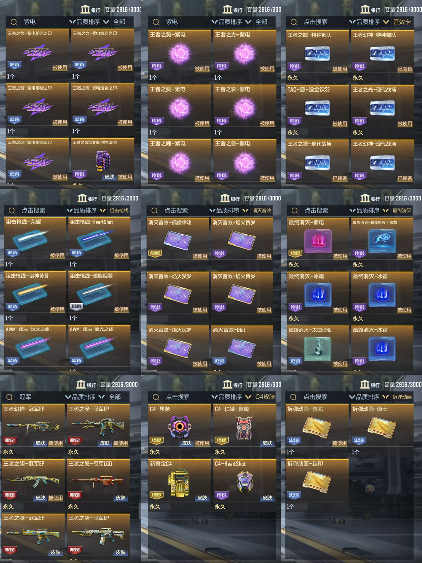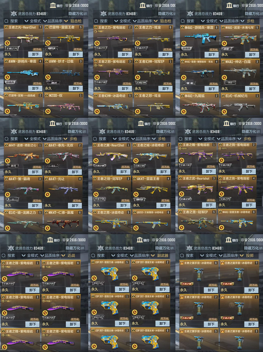 本游戏账号:英雄武器336个, 王者武器13个。军衔: 荣耀元首,段位: 枪王,拥有:王者-零,葵,孤狼,等15个角色。装备齐全让你拥有完美游戏初体验,特殊装备有:王者之电、MK23-机械纪元、AN94-超新星、巴雷特-雷神、AK47-雷暴、巴雷特-定军、AA12-竞界荣光、黑龙魂、地狱烈炎、M4A1-变色龙、王者之城、王者之烈、王者之势烟雾弹、巴雷特-枪娘、SCAR-文远、闪光弹-雷霆、闪光弹-雷暴、火麒麟-灵狐、M4A1-雷霆、USP-雷暴、81式-机械纪元、M4A1-海骑士、81式-阿波罗、COP 357-雷霆、王者之神、G36-机械纪元、AUG-机械纪元、CZS2-心动次元觉醒、M4A1-竞界荣光、MK47-机械纪元、MK47-仁德、M200-心动次元、王者之势闪光弹、巴雷特-毁灭、沙鹰-火麒麟、沙鹰-游骑兵、尼泊尔-竞界荣光、麒麟刺、擎天、雷霆、M200-心动次元觉醒、竞技战魂闪光弹、闪光弹-游骑兵、烟雾弹-游骑兵、墨刃-幻神、巴雷特-极光、巴雷特-雷霆、MK23-幻神