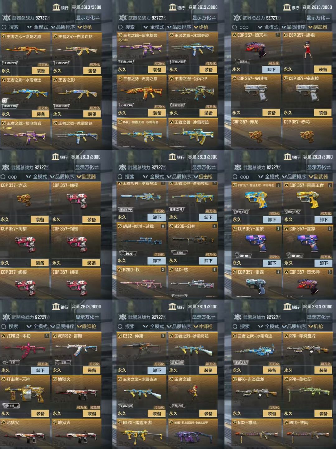 本游戏账号:英雄武器129个, 王者武器10个。军衔: 荣耀元首,段位: 枪神,拥有:关小雨,云悠悠,蝴蝶,等8个角色。装备齐全让你拥有完美游戏初体验,特殊装备有:AK47-奉先、CZS2-心动次元、黑龙刺、COP 357-雷霆、尼泊尔-竞界荣光、墨刃-幻神、MK23-幻神、A180-地狱凤凰、RPK-美杜莎、AA12-竞界荣光、王者之心闪光弹、MK23-机械纪元、AUG-机械纪元、王者之灵、王者之啸、闪光弹-雷霆、SPAS12-变形金刚·擎天柱、MG36-变形金刚·威震天、81式-阿波罗、尼泊尔-机械纪元、王者之神、QCW05-变形金刚·大黄蜂、USP-雷暴、MK47-机械纪元、AK47-雷霆、王者之掣、巴雷特-安琪拉、M4A1-星象、王者幻神、98K-黑骑士、SKS-美杜莎、AWM-妙才、M200-幻神、COP 357-星象、嗜血金鲨、地狱烈炎、王者之翼、AN94-超新星、斯泰尔-蝴蝶、王者之影烟雾弹、王者之锋-冰霜奇迹、王者之影闪光弹、98K-星神、竞技战魂烟雾弹、竞技战魂