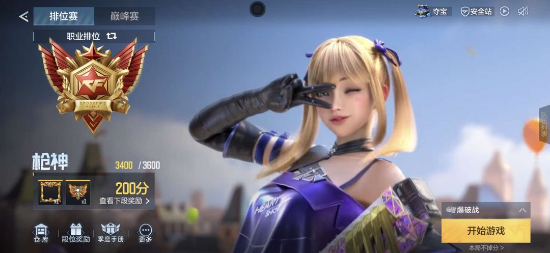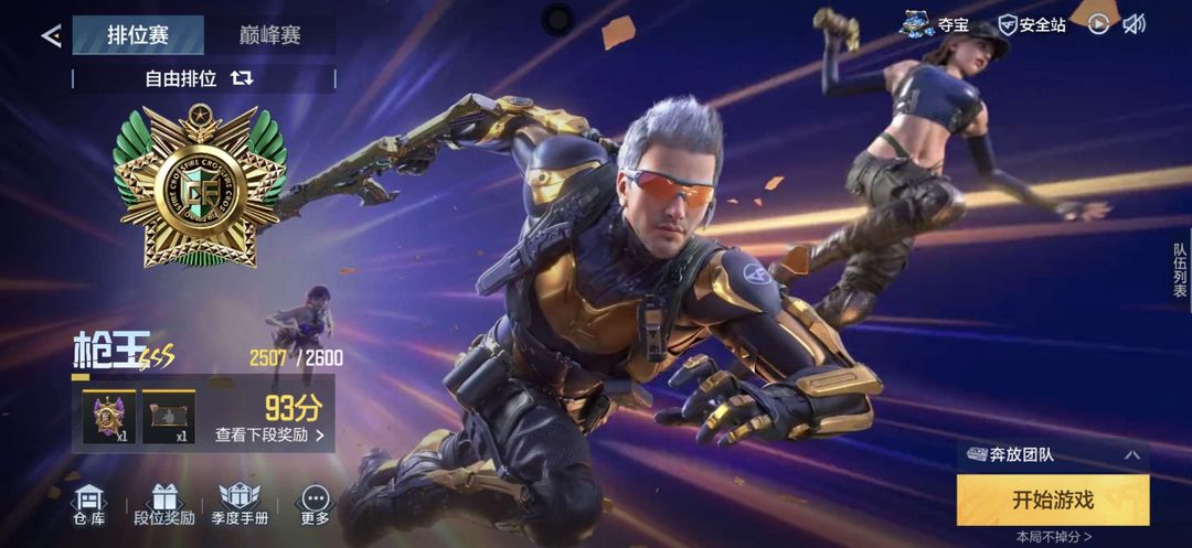 职业段位枪神,经典段位枪王3S,可以开麦,可以排位,游戏愉快