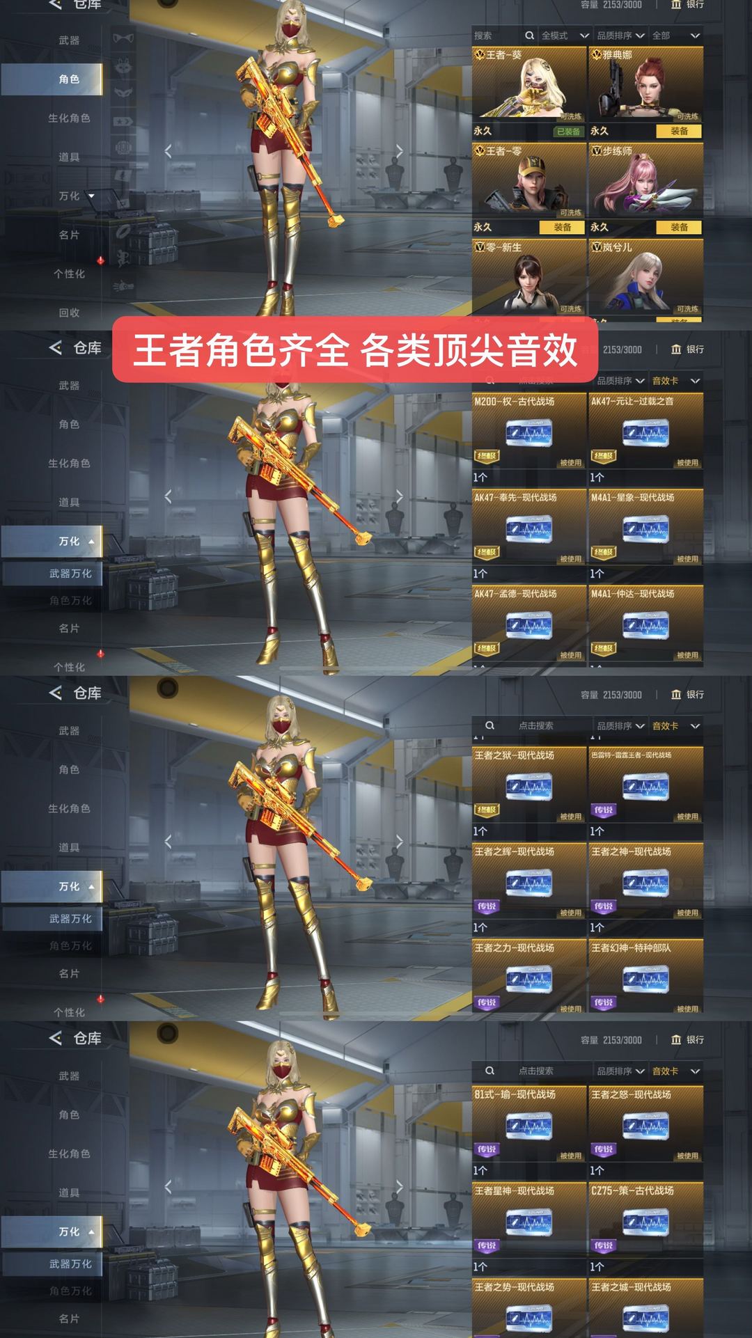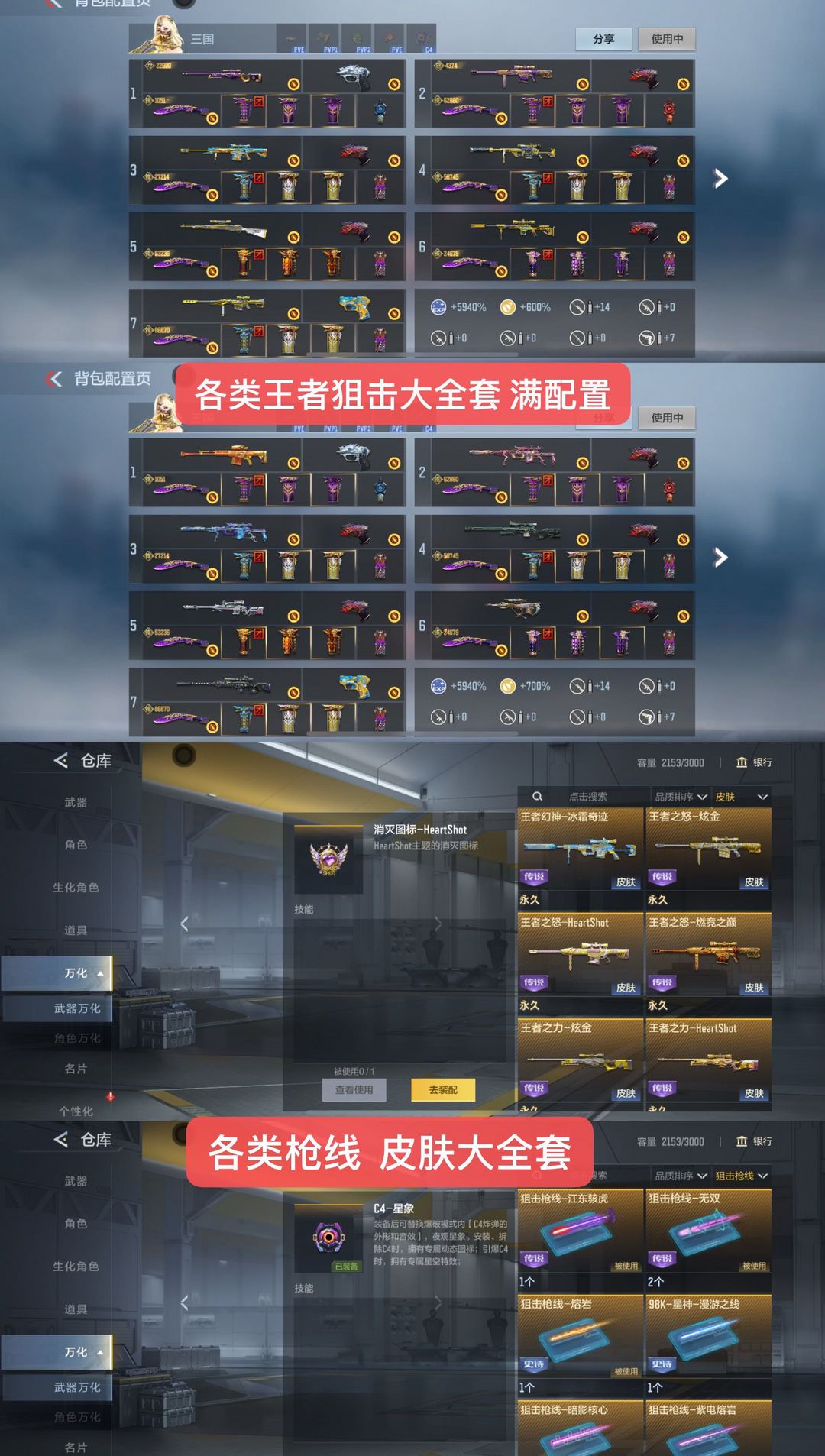 本游戏账号:英雄武器98个, 王者武器15个。军衔: 大元首,段位: 精英,拥有:萝拉,孤狼,香香,等4个角色。装备齐全让你拥有完美游戏初体验,特殊装备有:黑武士闪光弹、王者之翼闪光弹、王者之轮、王者之翼烟雾弹、黑武士烟雾弹、王者之击、嗜血金鲨、麒麟刺、铁锹-游骑兵、王者之心闪光弹、暗杀神、死神闪光弹、王者之心烟雾弹、王者之魄、巴雷特-极光、王者之影手雷、王者之灵、AWM-天龙、王者之心、王者之魂、王者之锋-冰霜奇迹、巴雷特-枪娘、王者之翼手雷、地狱烈炎、死神烟雾弹、黑武士手雷、王者之翼、王者之影闪光弹、王者之影烟雾弹、巴雷特-战龙、黄金风之子、风之子、等,随意畅选。