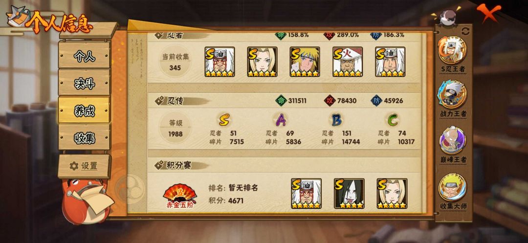 【♥认准双子♥,店铺内有众多优质账号等你来选】 ☟点击下方☟收藏☟有更多福利哦☟ 瞧一瞧看一看啦! ♥此账号♥ ♥两千七百多万战力♥ ♥忍者老多了♥ 各位老板走过路过不要错过