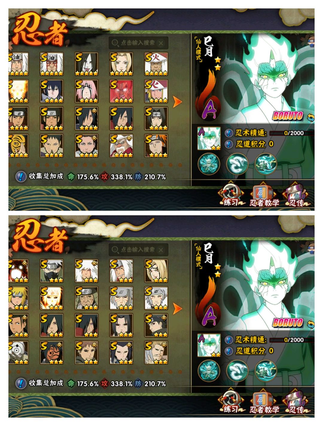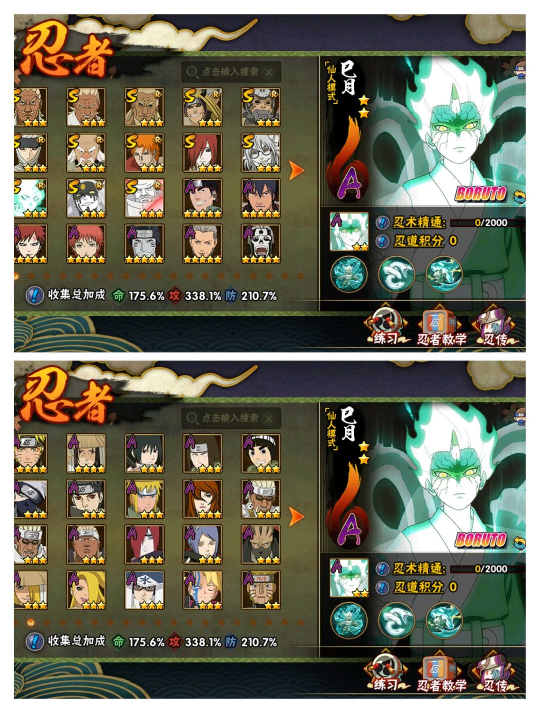 3290万全S✨仙人巳月已秒✨侠影佐助✨九喇嘛水门✨暴怒六尾✨350万攻