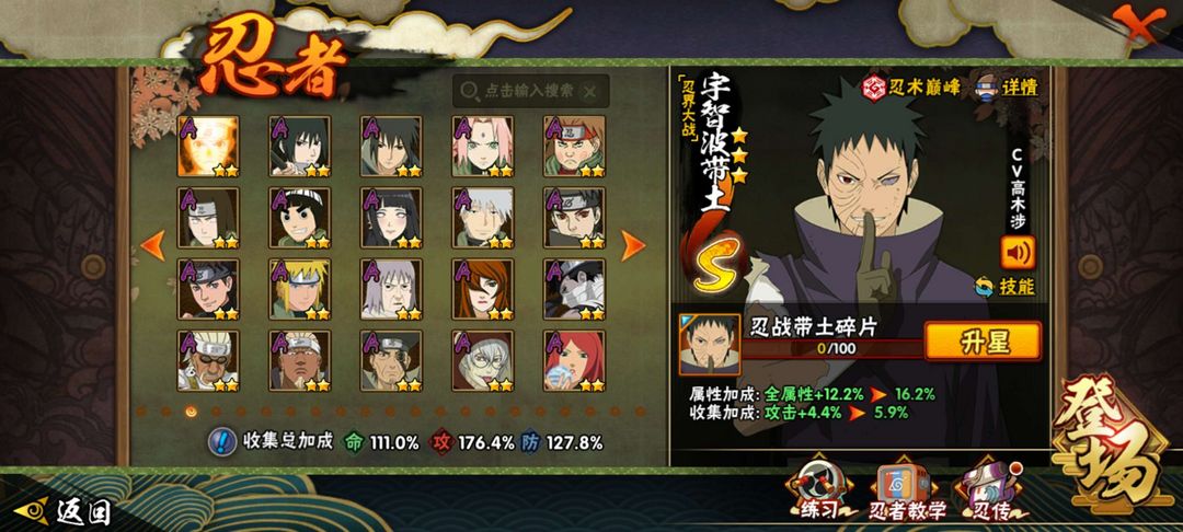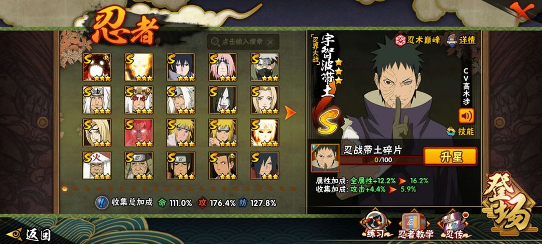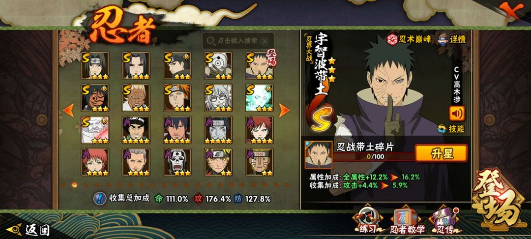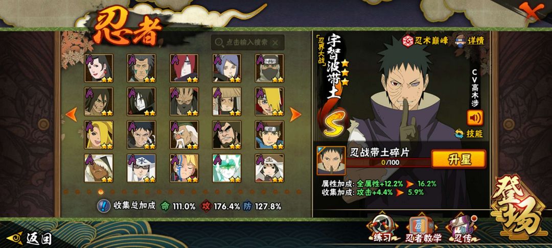 火影忍者手游31s忍者69a忍者忍战带土,白面具,死门开,漂泊带土