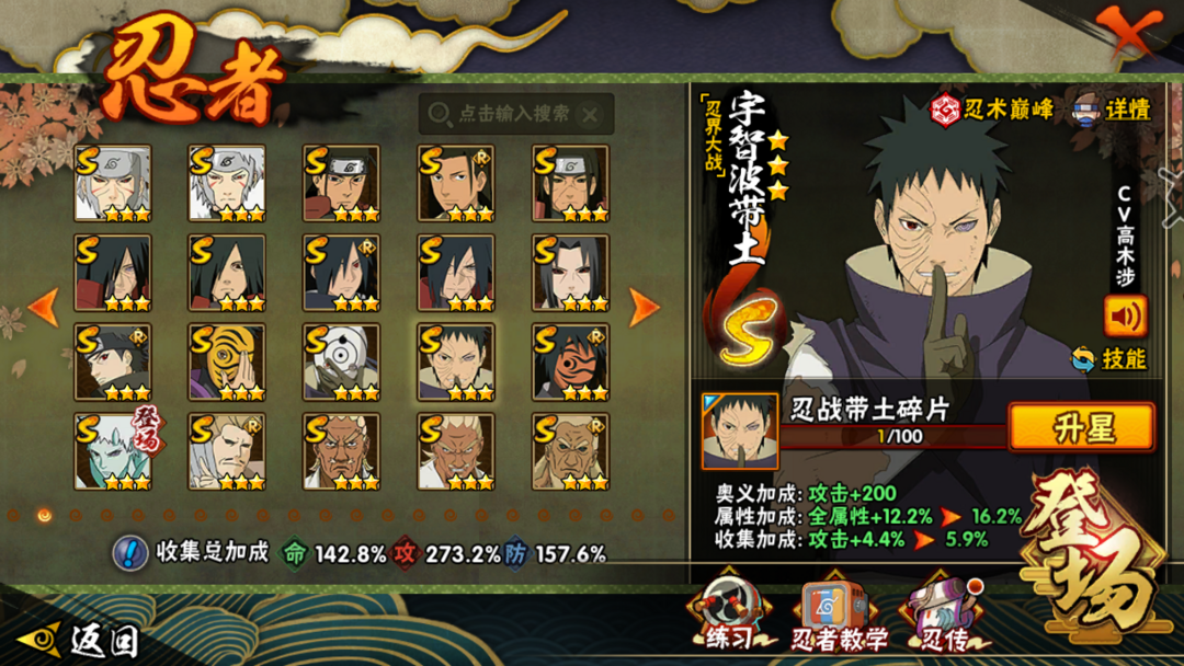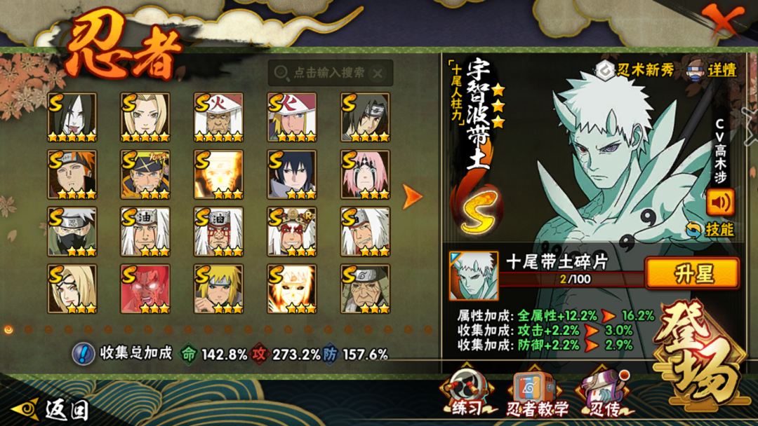 十尾带土-虚化狗-紫狗-黄猿-大鸡翅-舍人-新水-全高招T0忍者都有