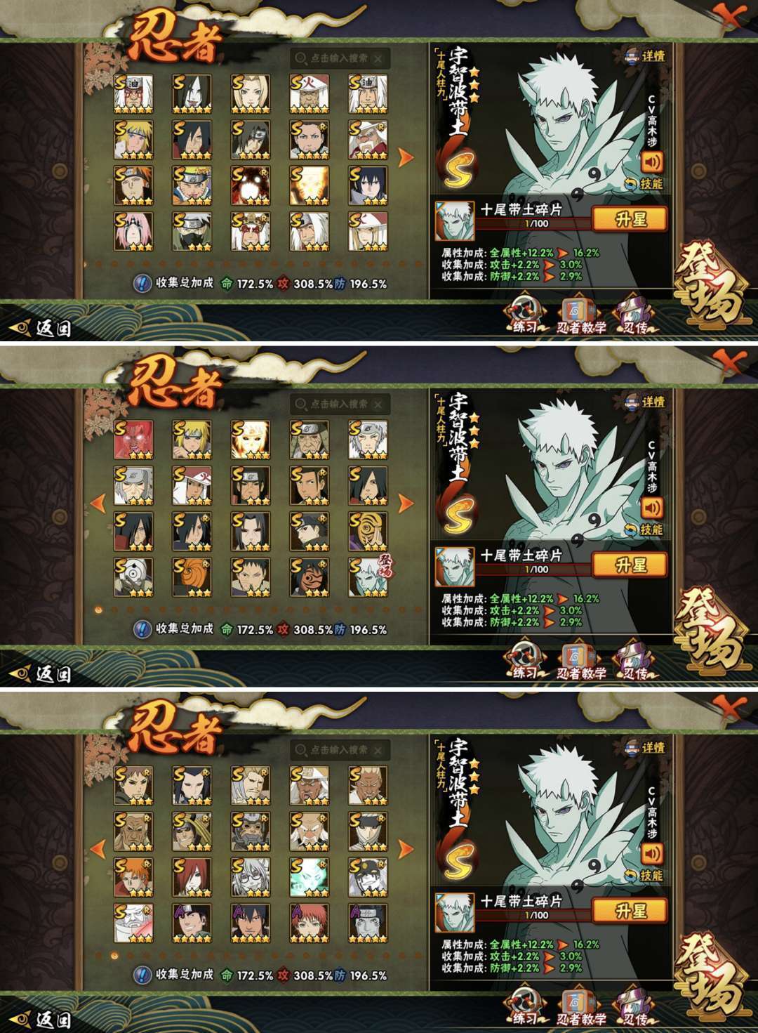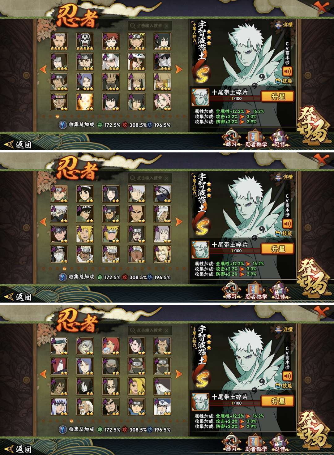 忍者:367忍者★56S忍★69A忍★164B忍