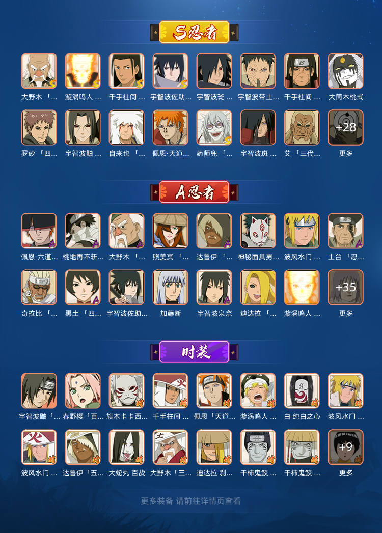 九尾水门、44S、六尾鸣人、漂泊带土、须佐卡卡西、须佐止水、漂泊佩恩、2200w