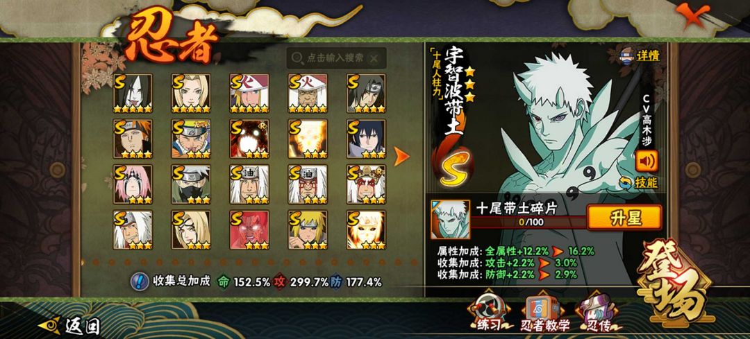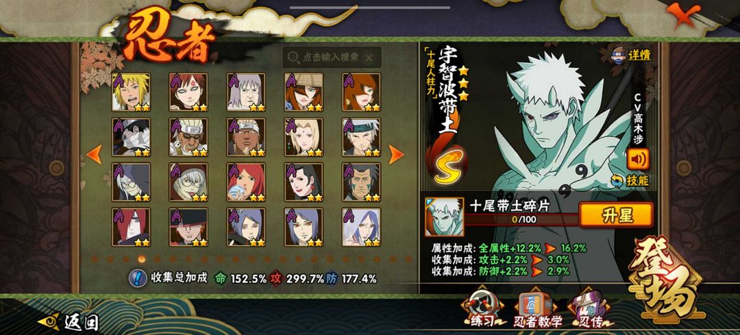 忍者: 320位忍者( 45S忍★60A忍★150B忍)