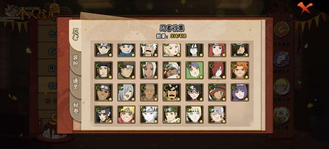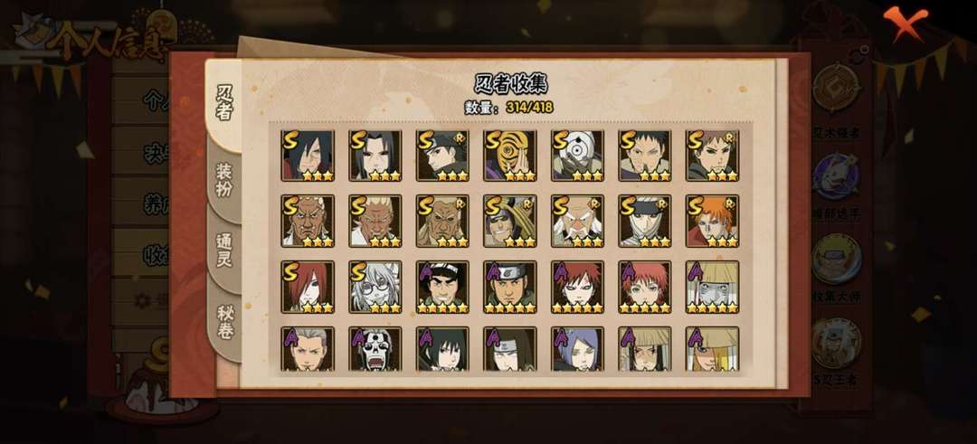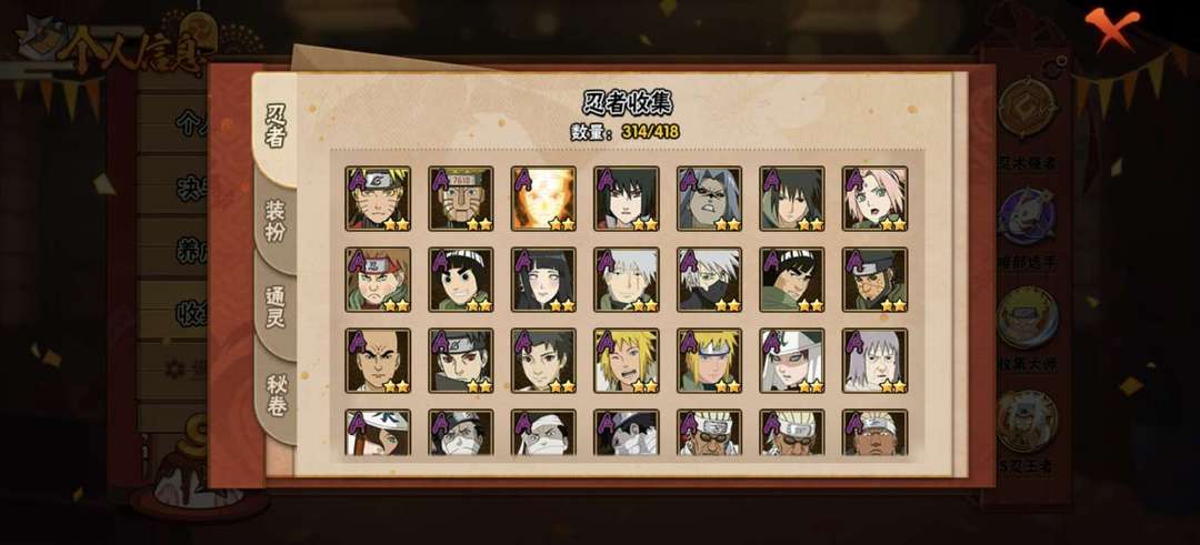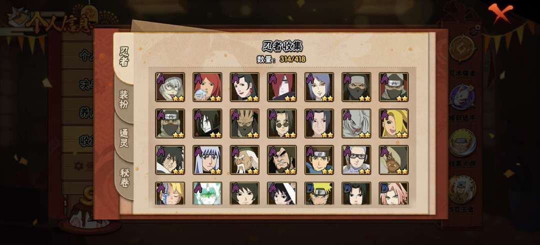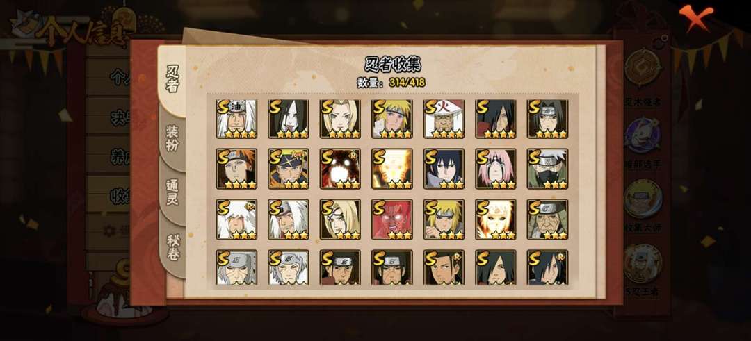 44S♥ 65A♥ 314忍 ♥暴怒六尾♥万花筒佐助 ♥九喇嘛鸣人 ♥秽土解斑 ♥创立斑♥所有高招A
