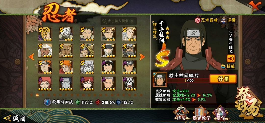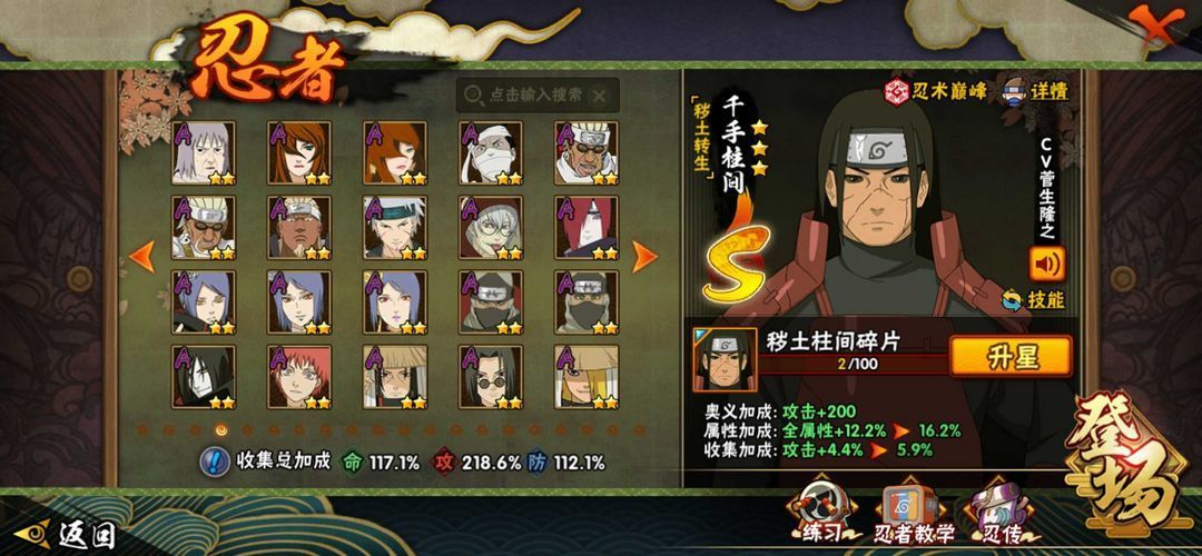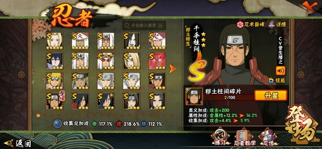1550万战力♋240忍者♋33s54A♋死门凯天道超仙人兜秽土斑火之意志秽土二三四代鸡佐暴走带土
