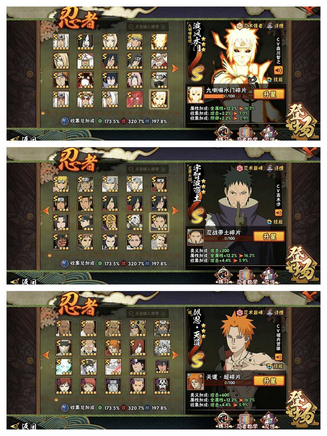 侠隐佐助✨3200w366全忍者✨53S+73A✨黑绝 漂泊带土✨忍战带土 白面具 天道超