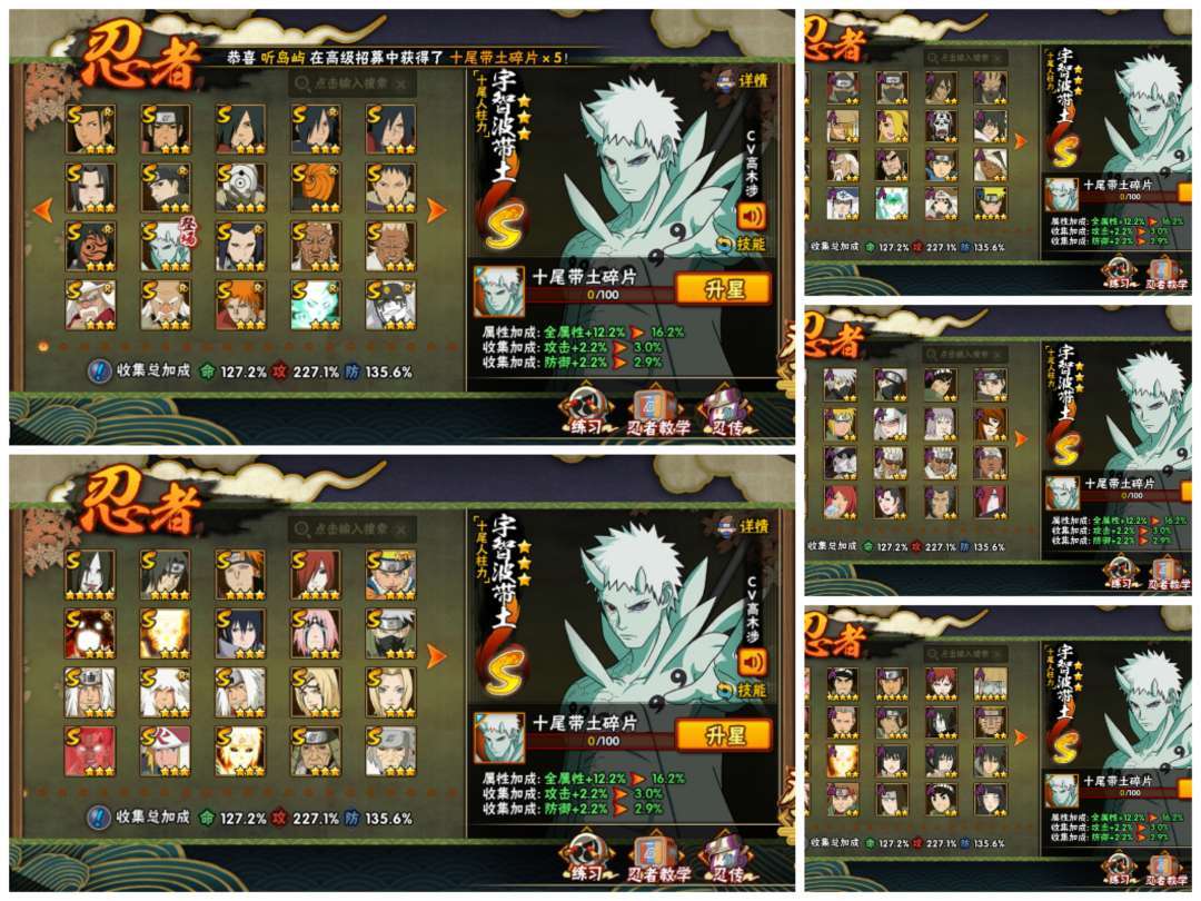 十尾带土♌五影斑♈九喇嘛水门♌传说自来也♍大筒木舍人♒漂泊带土♏须佐卡卡西♑须佐止水♒永恒佐助