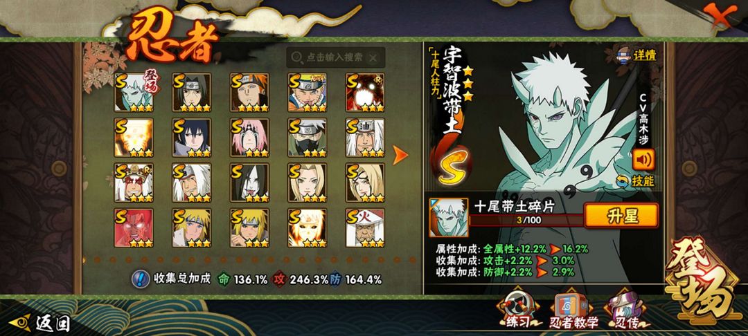 43s,全高招a忍,创立柱间,大筒木桃式,虚佐止水,神农,五影斑,九喇嘛水门,十尾带土已秒