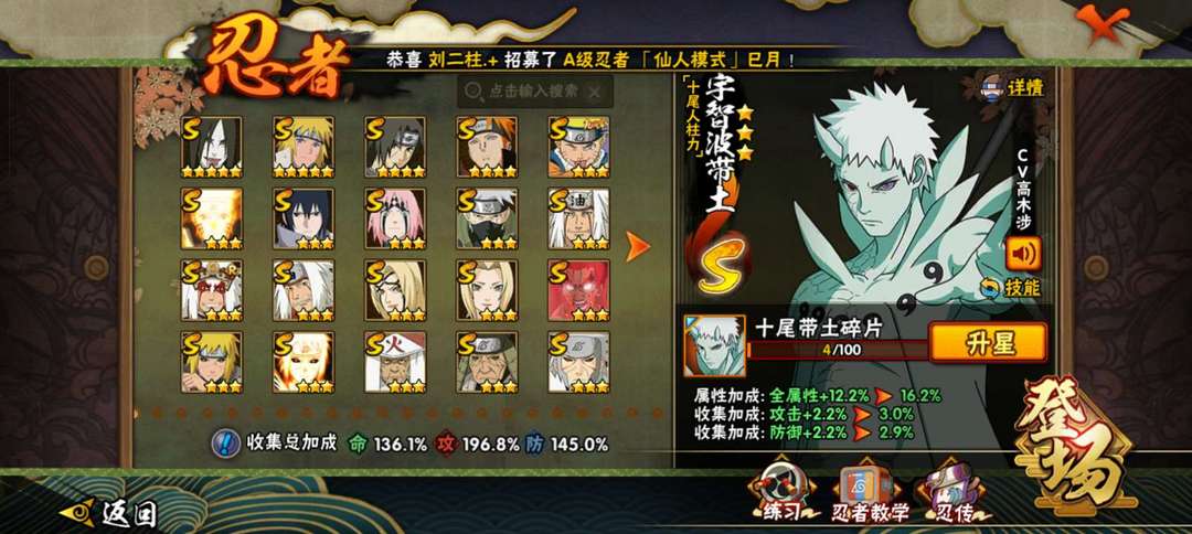 全高招都有,十尾带土,巳月,神秘特产男,金身水门,秽土再不斩,解斑,改版再不斩,神农等