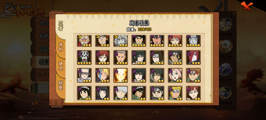 满级霸体,满级散,金身水门,仙人巳月,秽土再不斩,活再不斩,三代目风影,最终章雏田,解斑,桃博,千手柱间,千手扉间,忍战宁次,九喇嘛鸣人,忍战樱,博人传长十郎,须佐佐助,青年长门,青年雷影,秽土柱间,秽土斑,仙人兜,秽土鼬,死门凯,破面带土,青年水门,博人传达鲁伊,博人传黑土,照美冥,忍战奇拉比,奇拉比,博人传木叶丸,小南,天道佩恩,波风水门,忍战李,忍战艾,最终章雏田,忍战我爱罗,宇智波止水,绯流琥蝎,钢铁迈特凯,桀骜阿斯玛,狂野鲛鲨鬼鲛,百战鼬,再不斩,雷影