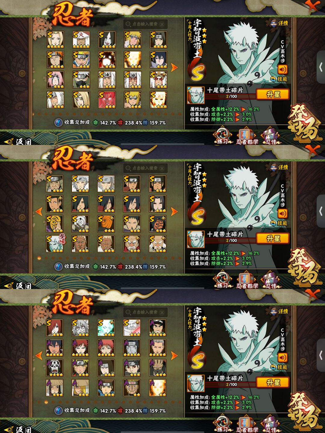 秒十尾带土✨五影会谈斑✨2250万287忍者✨44S+55A✨高招全忍者✨十周年鸣佐✨仙人巳月