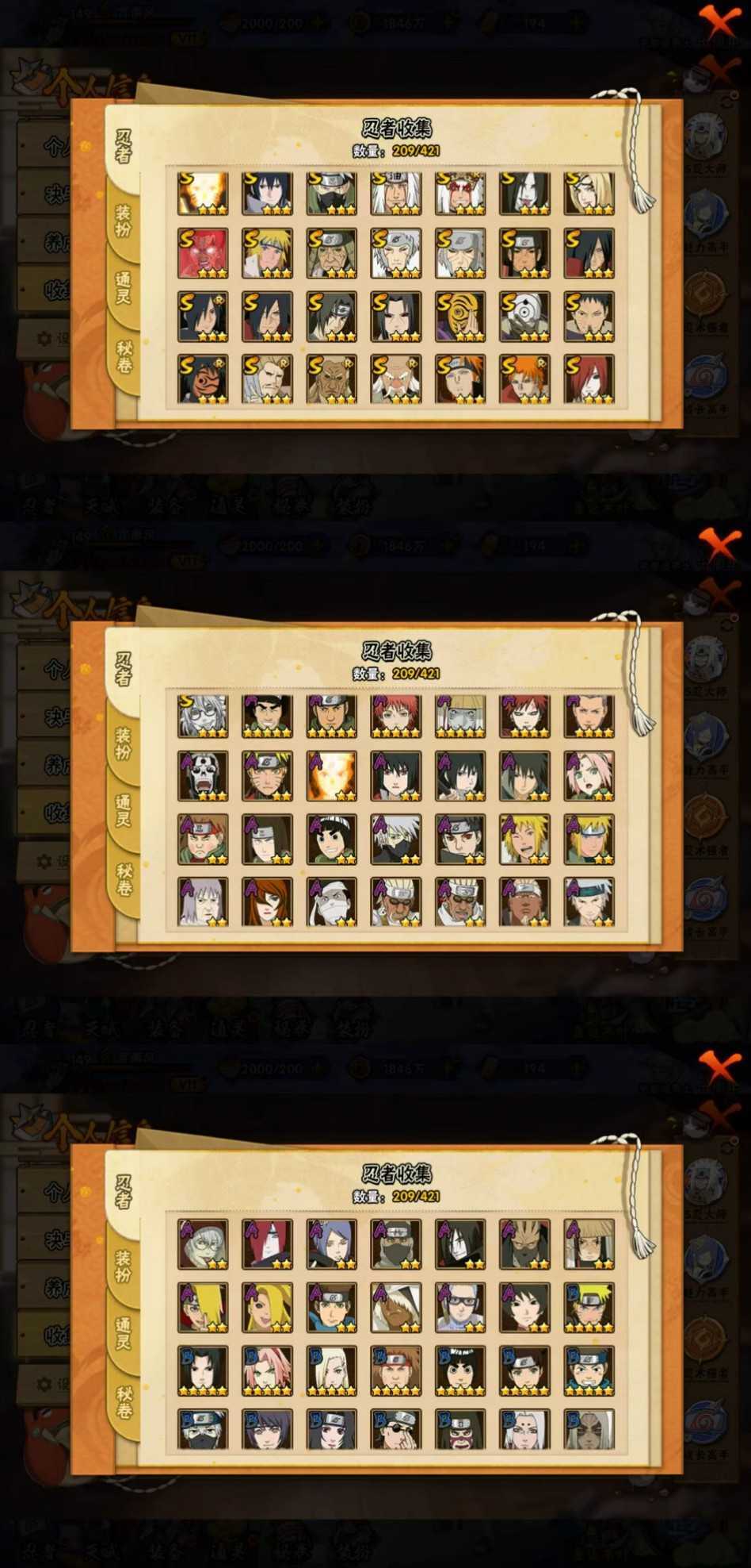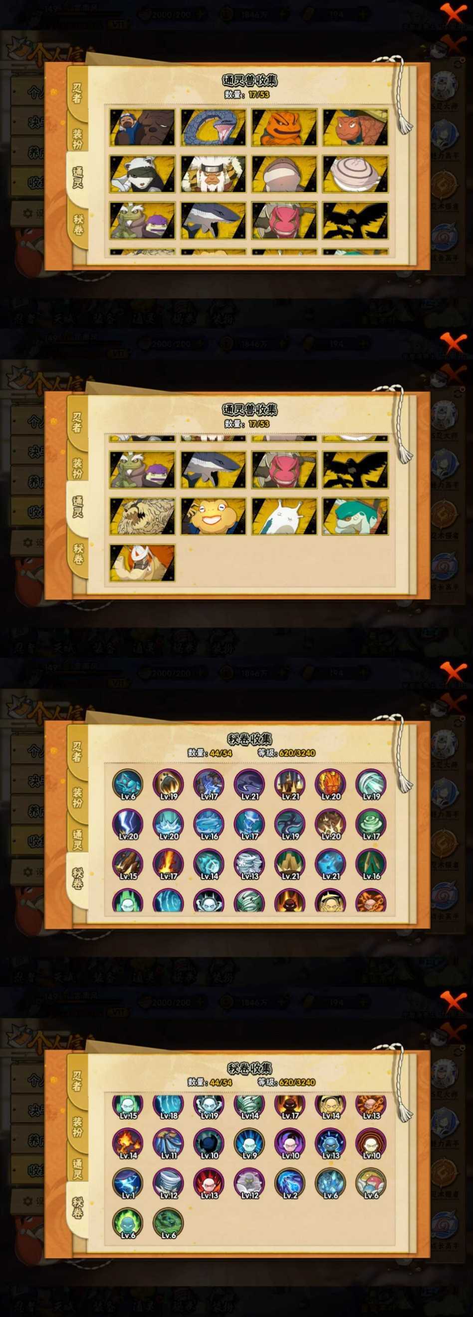 该号209忍者,29S,40A,通灵兽17只,密卷44个,祝您游戏愉快~