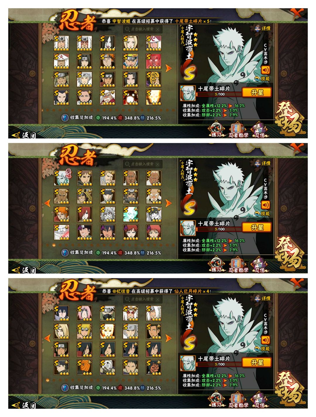 十尾人柱力带土已秒♥全56S82A388忍者♥3700万战力♥九喇嘛水门♥己月