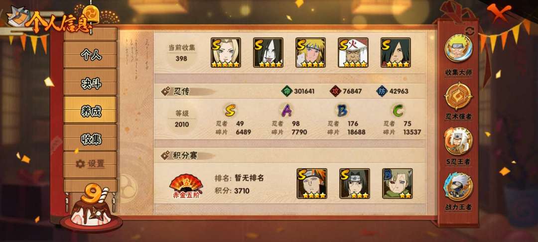 49s98a全忍者收集号。2千5百万战力,可带团本
