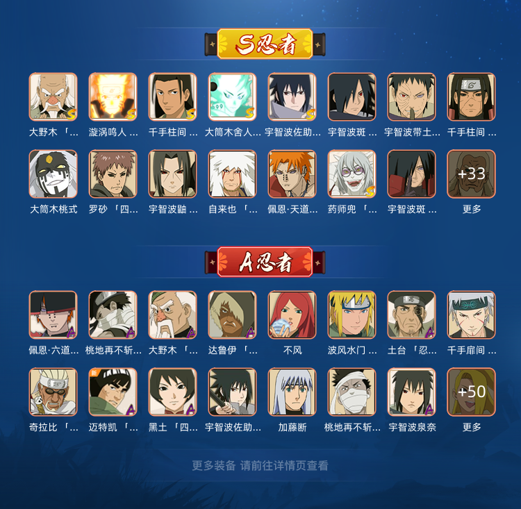 50S|65A十周年鸣佐|九尾水门|秽土再不斩|传说自来也|漂泊带土|漂泊六道|须佐卡卡西