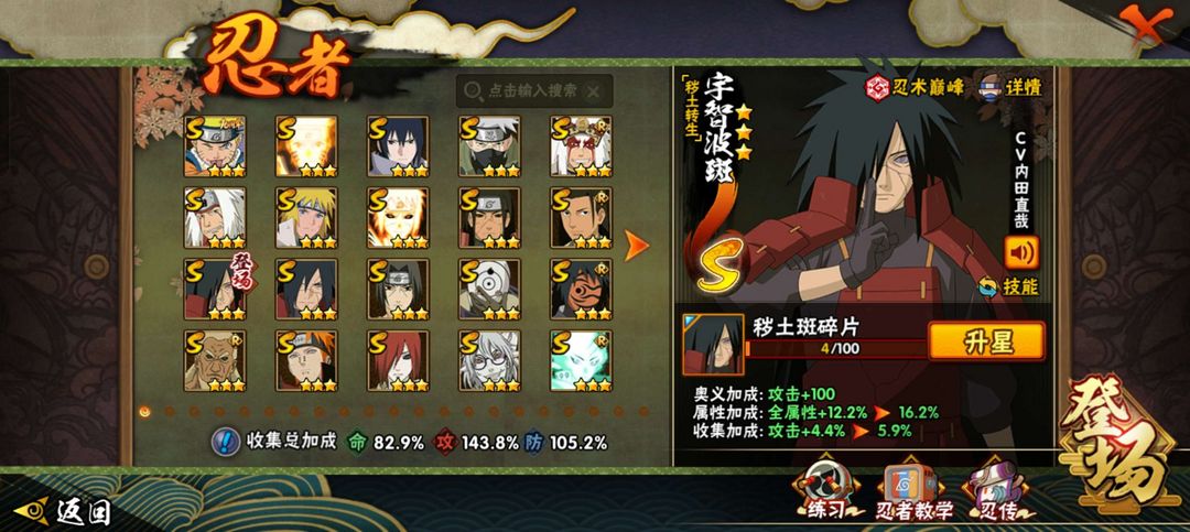 22s 40a 200+忍者 须佐卡 黄猿 紫狗 秽土斑 解斑 白面具柱间 忍法帖忍者