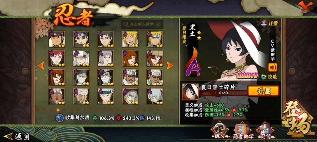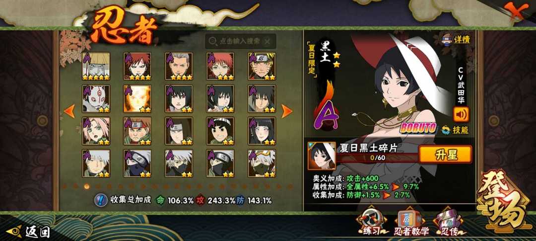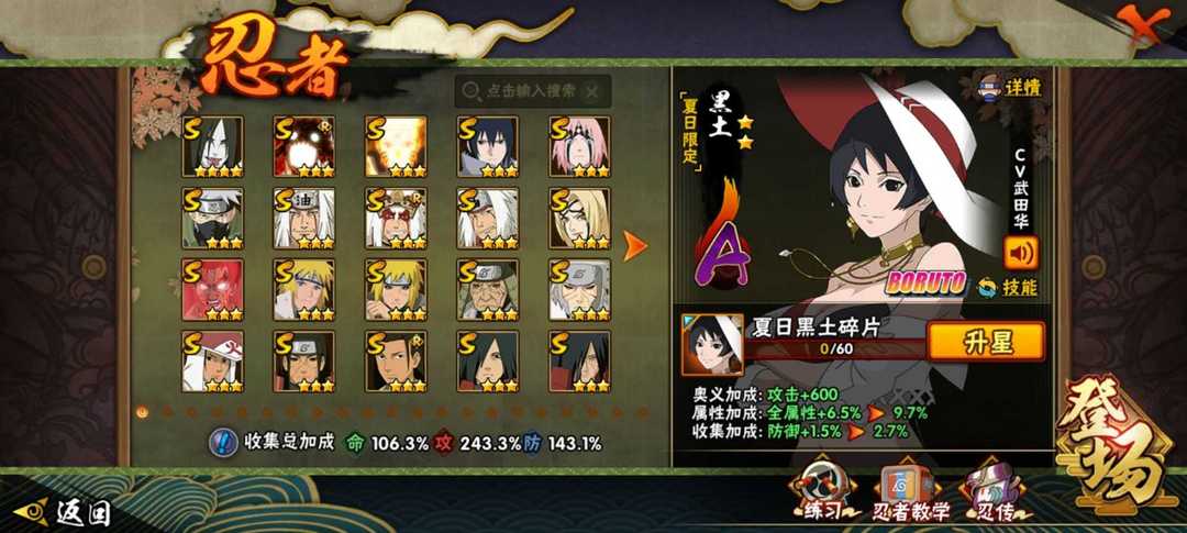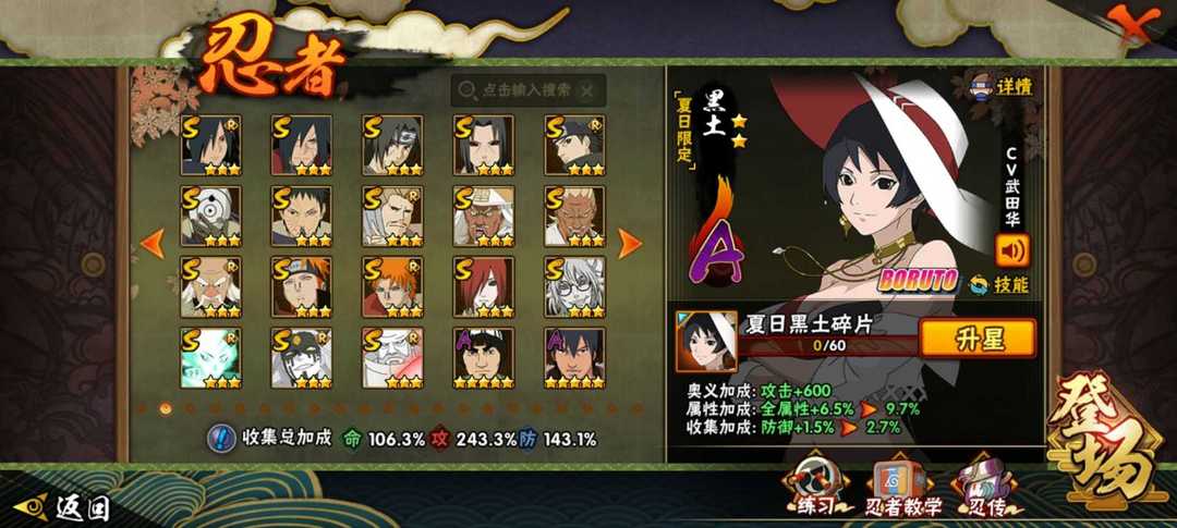 【安卓960区,战斗力1000万,攻击力140万,20S50A共200忍者,秘卷全有,霸体散等热门密卷都是满级效果,热门通灵有熊猫蛞蝓守鹤怒鬼二尾螃蟹等,具体请查看截图。】