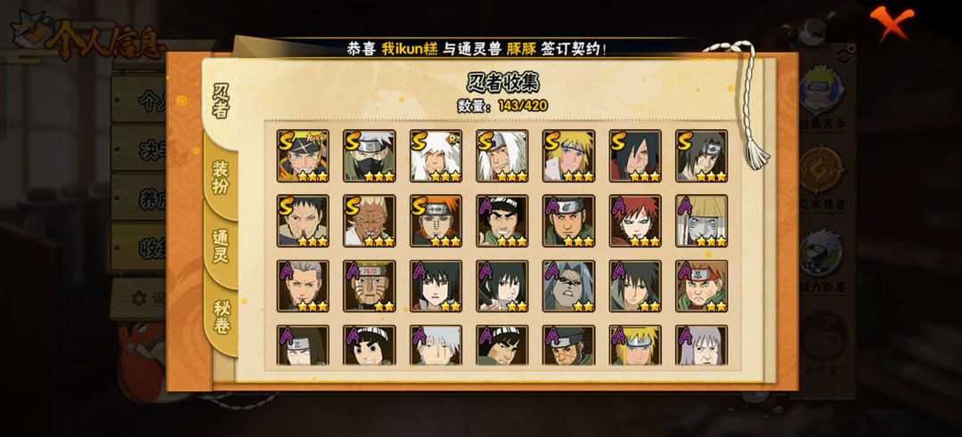 10s33a,有破面带土,须佐卡卡西,断臂雷,解斑,通灵兽有熊猫,霸体9级