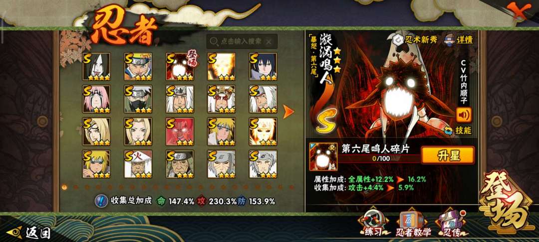 六尾鸣人、金身水门、大筒木舍人、五影会谈斑、须佐止水,等等许多忍者等待各位去体验♥♥♥