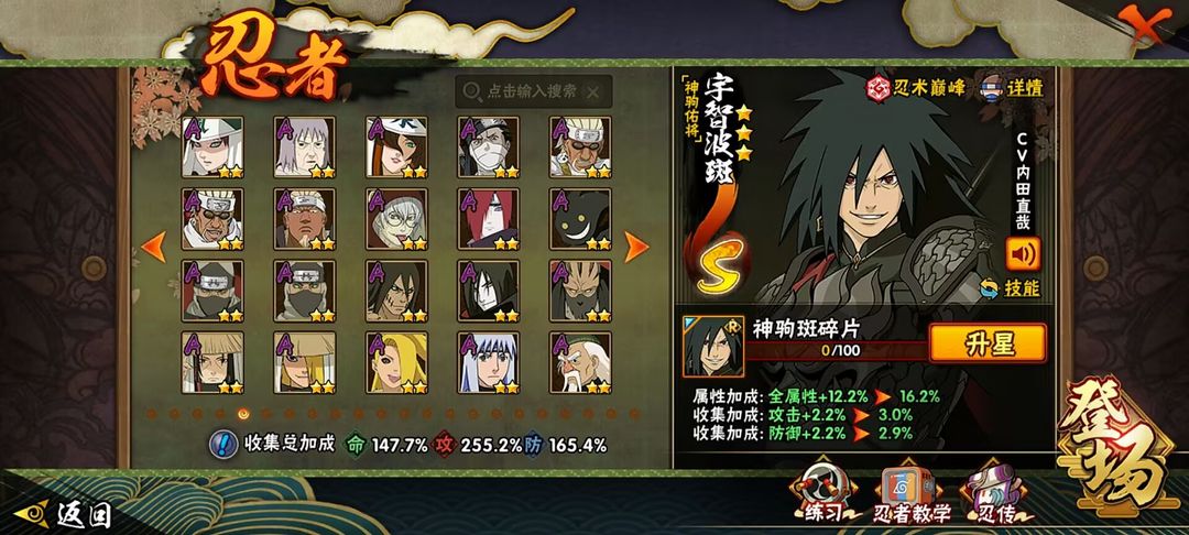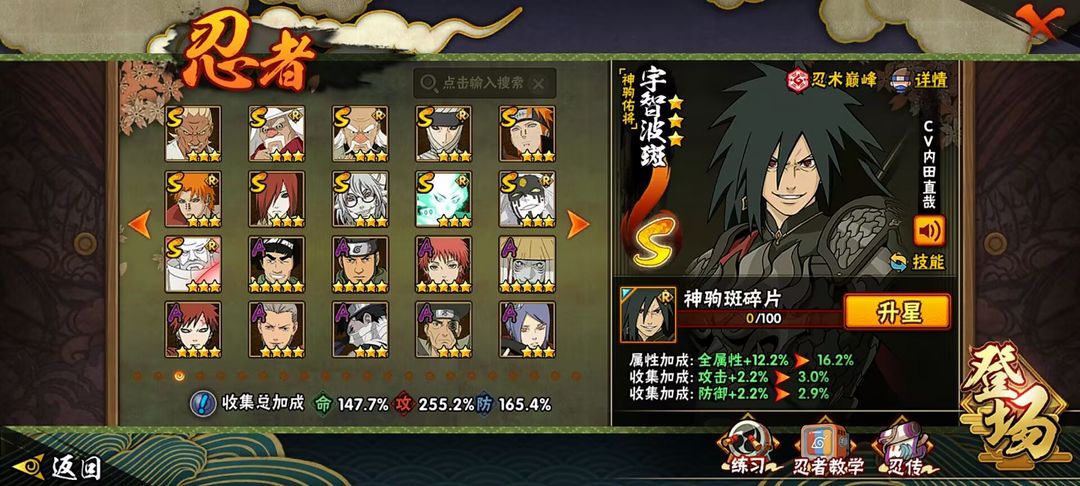 迈特凯「死门」;千手柱间「秽土转生」;无「二代目土影」;大野木「忍界大战」;纲手「百豪」;“宇智波斑”「白面具」;佩恩「天道」;艾「四代目雷影」;自来也「舞之豪杰」;宇智波斑 「秽土转生·解」;神秘面具男「红夜之刃」;旗木卡卡西「须佐能乎」;宇智波鼬「秽土转生」;千手柱间「木叶创立」;宇智波斑「木叶创立」;漩涡鸣人「暴怒·第六尾」;大筒木舍人「最终章」;罗砂「四代目风影」;宇智波鼬「须佐能乎」;千手柱间;自来也「仙人模式」;千手扉间「秽土转生」;艾「忍界大战」;长门「秽土转生」;漩涡鸣人「九喇嘛连结」;波风水门「秽土转生」;佩恩·天道「超」;猿飞日斩「秽土转生」;宇智波斑「秽土转生」;宇智波佐助「永恒万花筒」;大野木「三代目土影」;大筒木桃式;药师兜「仙人模式」;宇智波止水「须佐能乎」;宇智波带土「忍界大战」;大筒木金式;自来也「传说中的三忍」;春野樱「忍界大战」;波风水门「九喇嘛连结」;马斑;六道带土