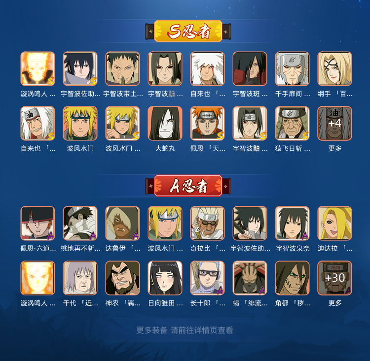 1100万战力,20S,46A,热门决斗场忍者都有,点券忍者有漂泊佩恩,漂泊小南,漂泊带土,黑绝