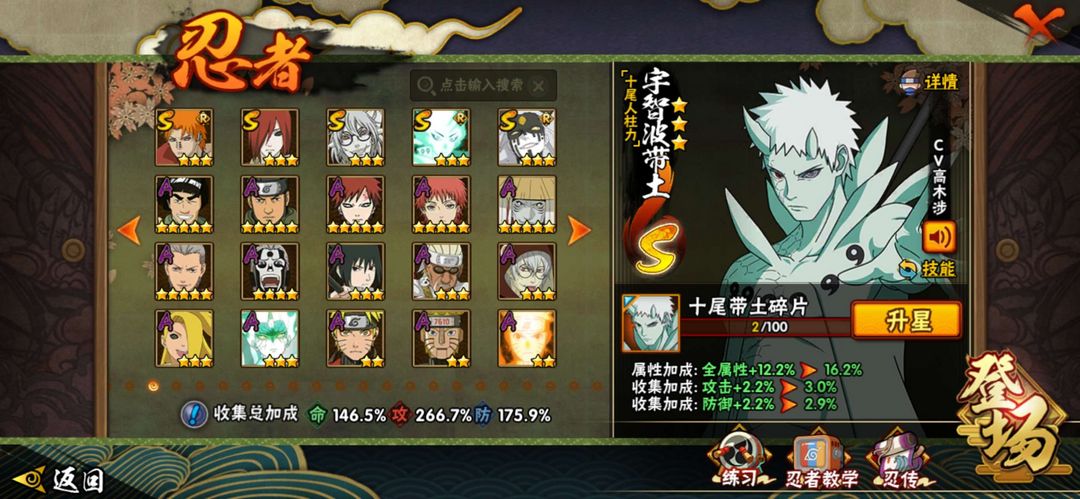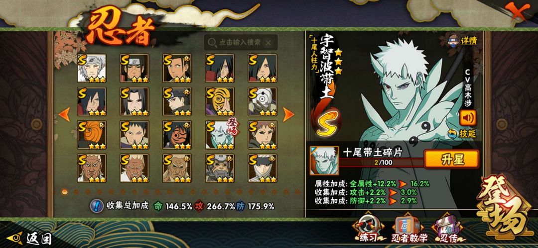 45s★66A★328忍★漂泊带土★金身水门★秽土再不斩★ 死三代★万花筒卡卡西★死门凯★十尾带土