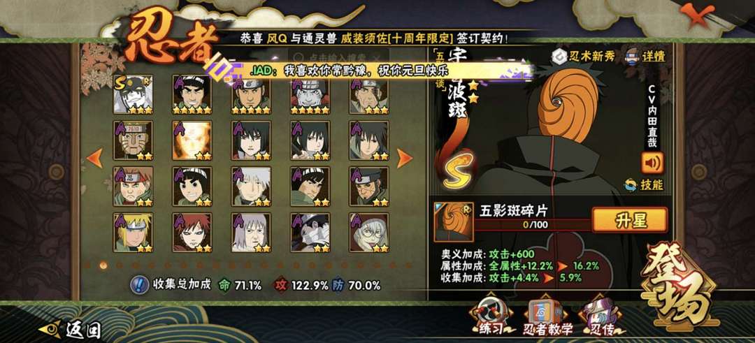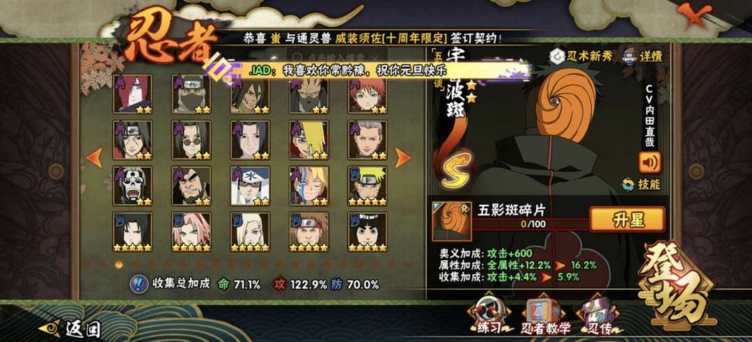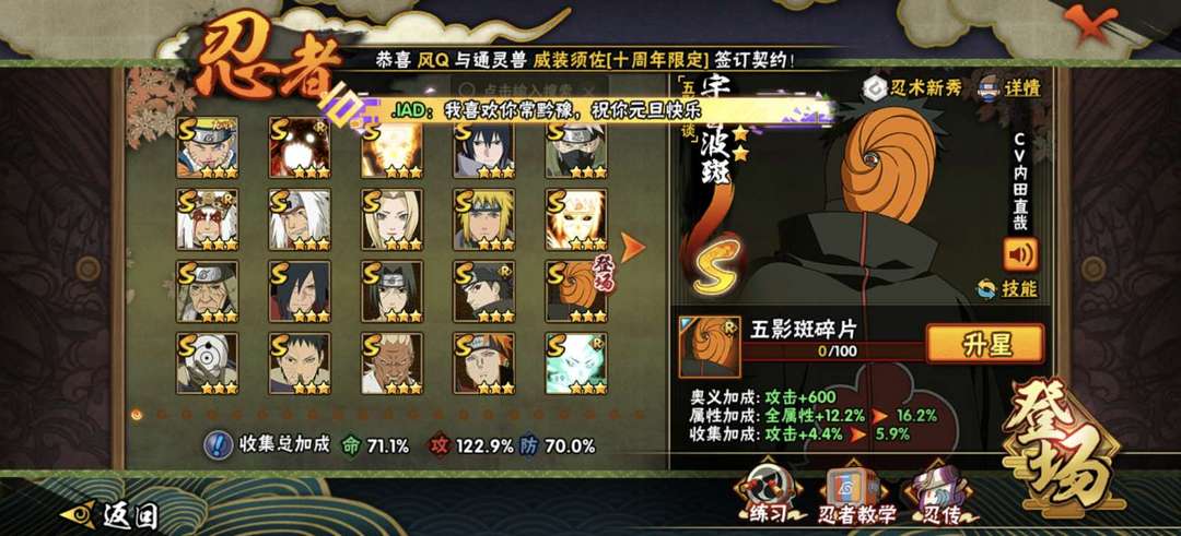 21s⭐33a⭐金水⭐解斑⭐须佐止水⭐忍战带土⭐须佐卡卡西⭐黄猿⭐紫狗⭐白面具⭐新春鼬⭐夏日鼬