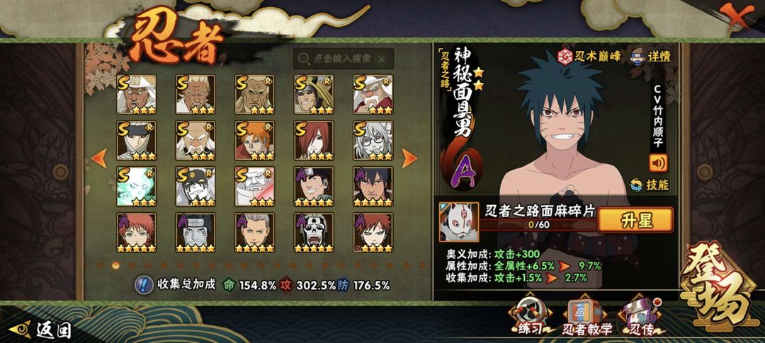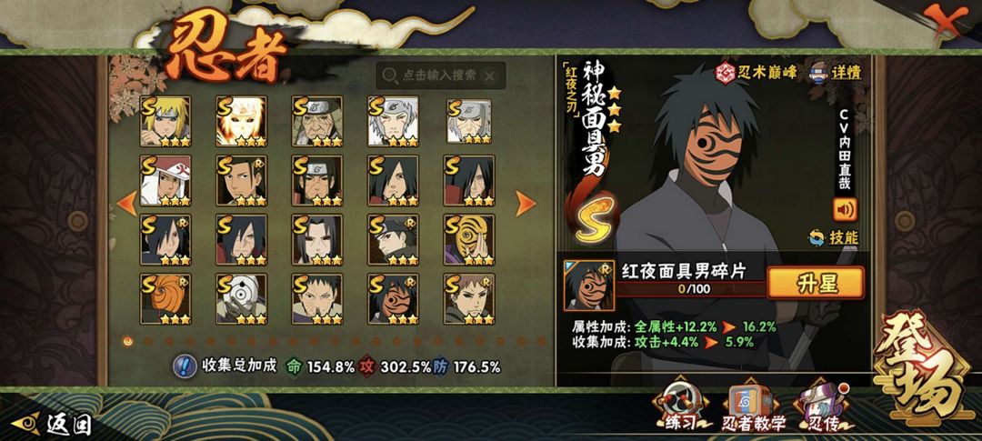 52S⭐80A⭐344忍⭐十尾带土 五影会谈 斑以及众多氪金A忍⭐青春哥⭐暴怒带土皮肤⭐侠隐江湖系列